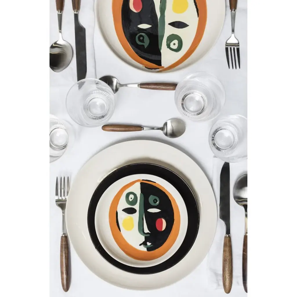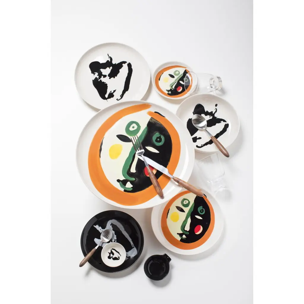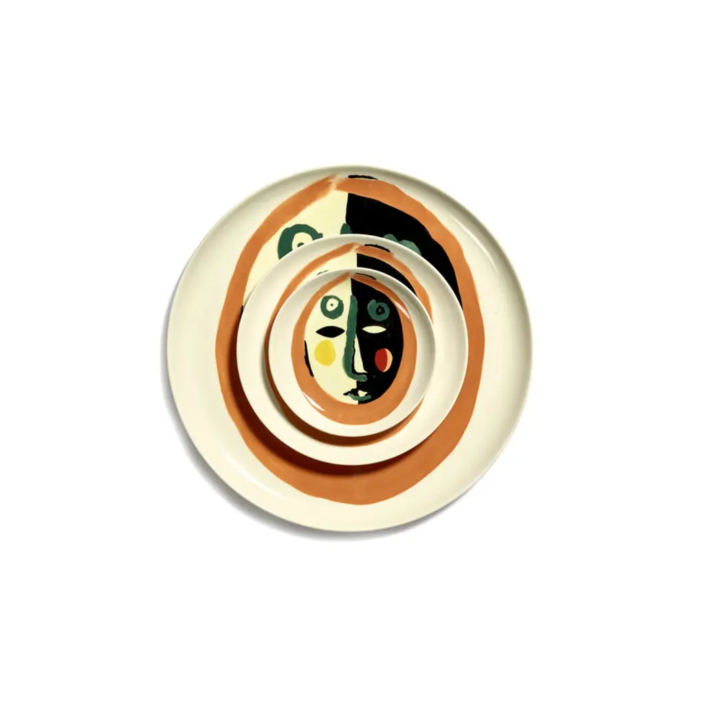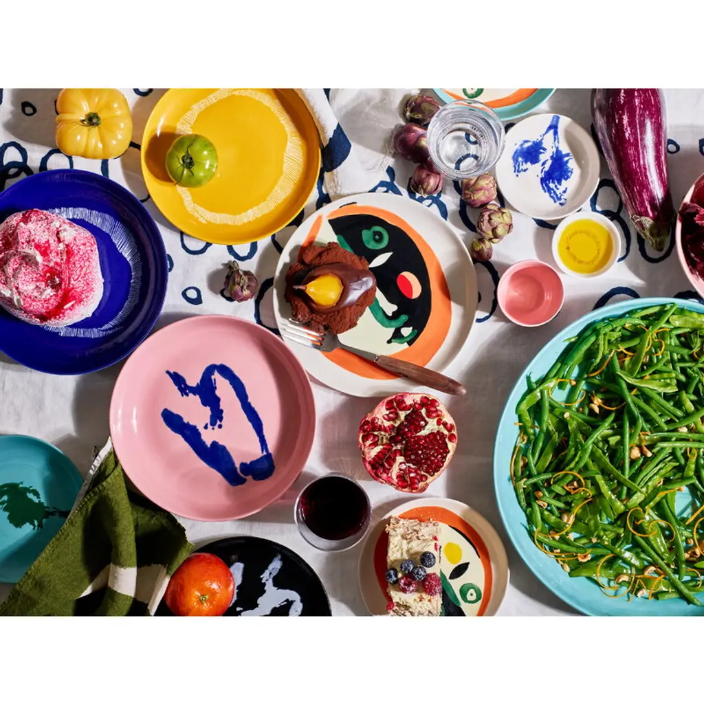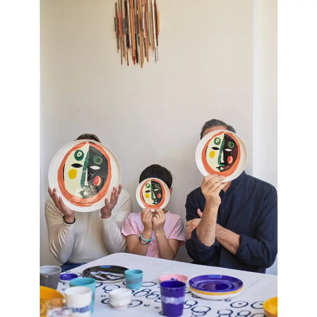 Serax's Feast plate is decorated with an abstract face, which appears to be either smiling or wondering – the meaning of the expression depends entirely on the viewer! The playful plate is ideal for serving sweets, nuts, fruit and other small snacks. The pack contains four little plates. The Feast dishware celebrates cheerful colors and positivity: it is created for gatherings with friends and family. Designed by Yotam Ottolenghi in collaboration with Italian artist Ivo Bisignano, the expressive tableware set includes plates, bowls, cups and serving dishes of different sizes and colors – something for every meal. The dishware can be mixed and matched, but also look beautiful as individual pieces.