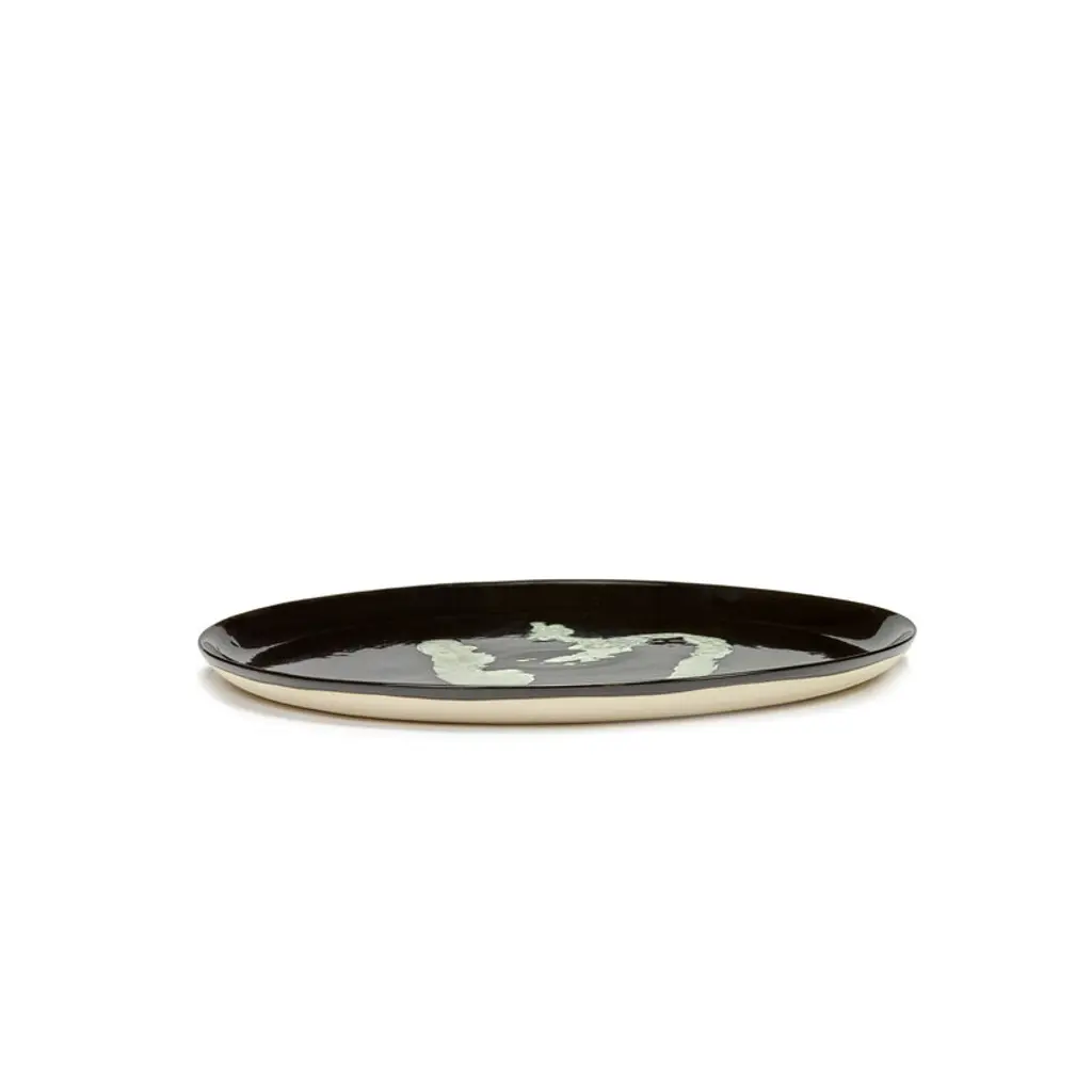 Serax's Feast serving plate is decorated with a white abstract pattern, reminiscent of the classic Rorschach test – which shape do you see on a black background? The large round plate is ideal for serving fish and salad, as well as snacks and other desserts. The Feast dishware celebrates cheerful colors and positivity: it is created for gatherings with friends and family. Designed by Yotam Ottolenghi in collaboration with Italian artist Ivo Bisignano, the expressive tableware set includes plates, bowls, cups and serving dishes of different sizes and colors – something for every meal. The dishware can be mixed and matched, but also look beautiful as individual pieces.