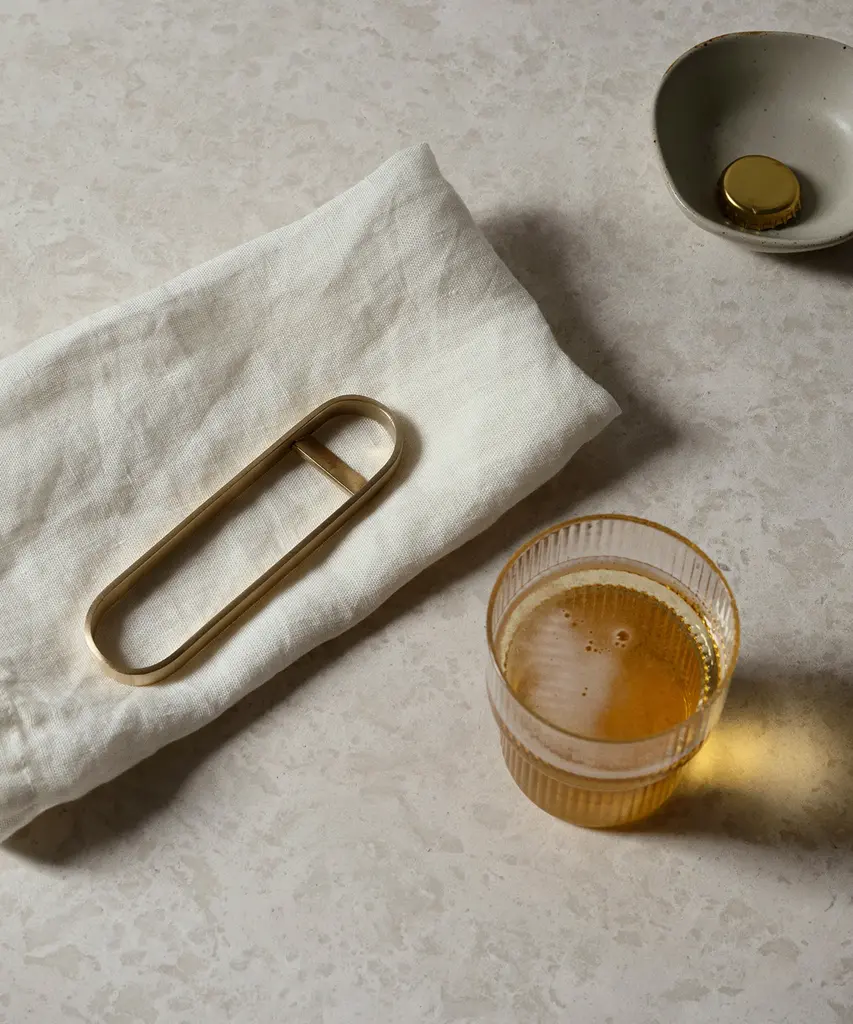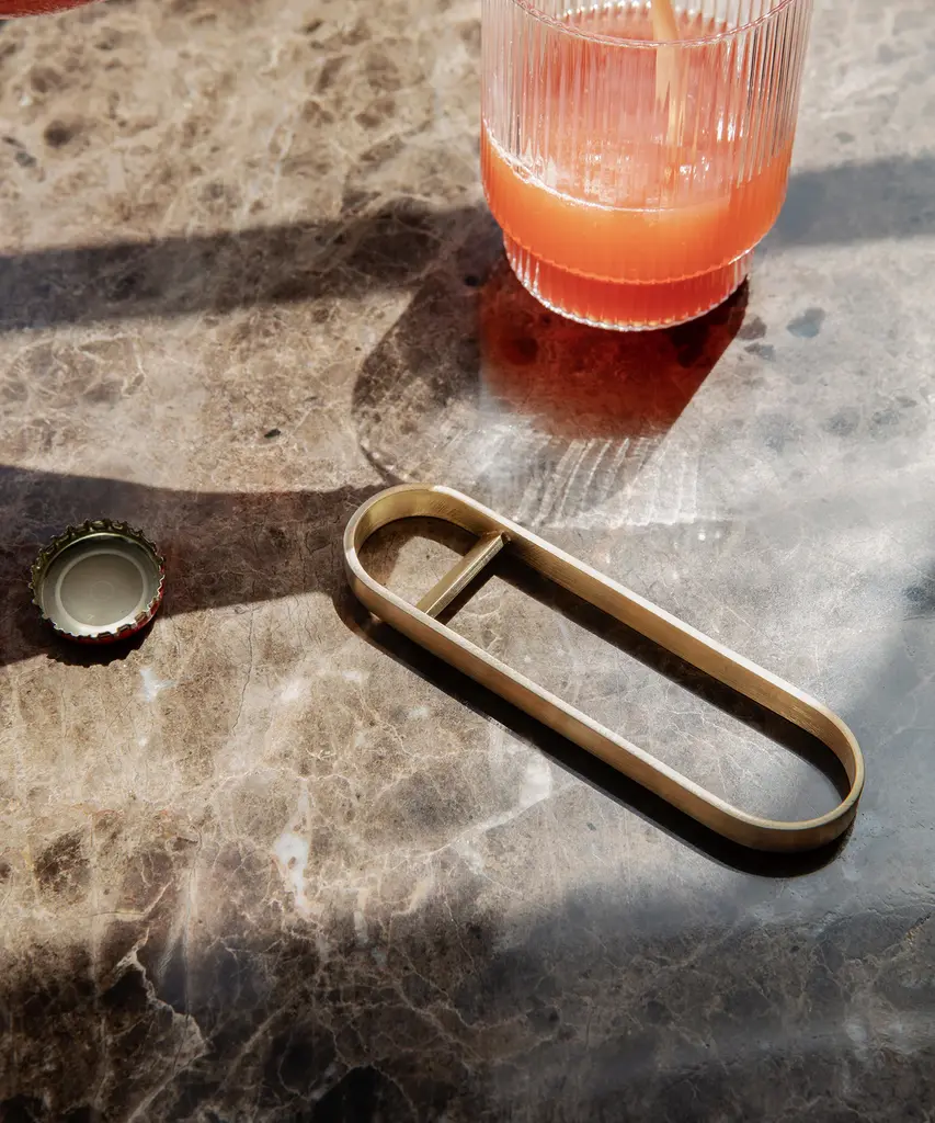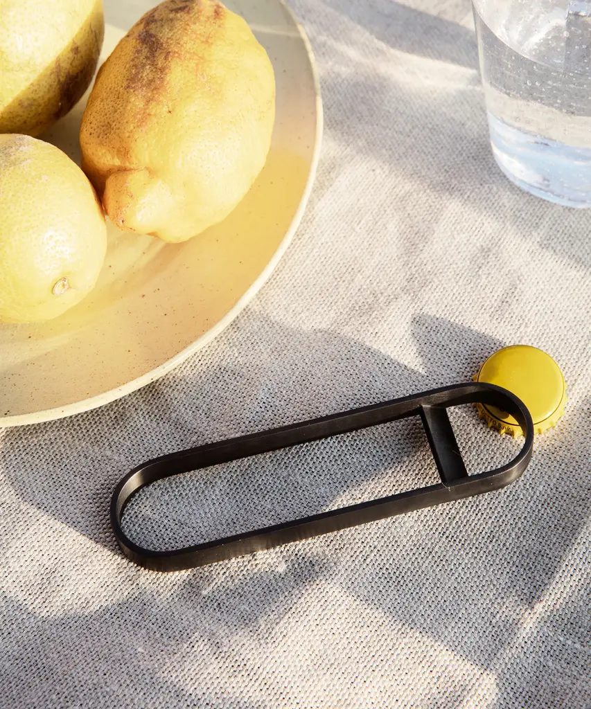 Equal parts decorative and functional, our Fein bottle opener in blackened brass makes light work of opening bottles. The modern design has a traditional feel and it is shaped to sit comfortably in the palm of a hand. Open every bottle in a jiffy with the functional brass bottle opener. When you don't use it, you can easily leave it out in the kitchen or the minibar where it will add a stylish touch. Designed and produced by the Copenhagen-based studio Ferm Living.