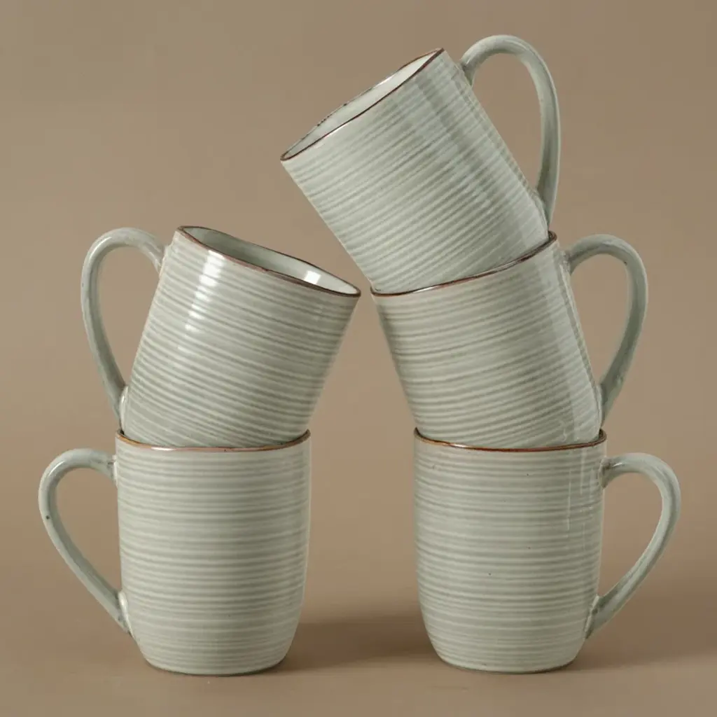 These coffee mugs set can serve up to 4 people for all your drinking needs. Each cup is made of sturdy stoneware, the drinkware set are carved with delicate threaded lines, and the retro texture adds elegance to the cups, blending the functionality of everyday use with the dynamic artistic quality. Suitable for any drinking occasions, this dishes is 100% dishwasher and microwave-safe.