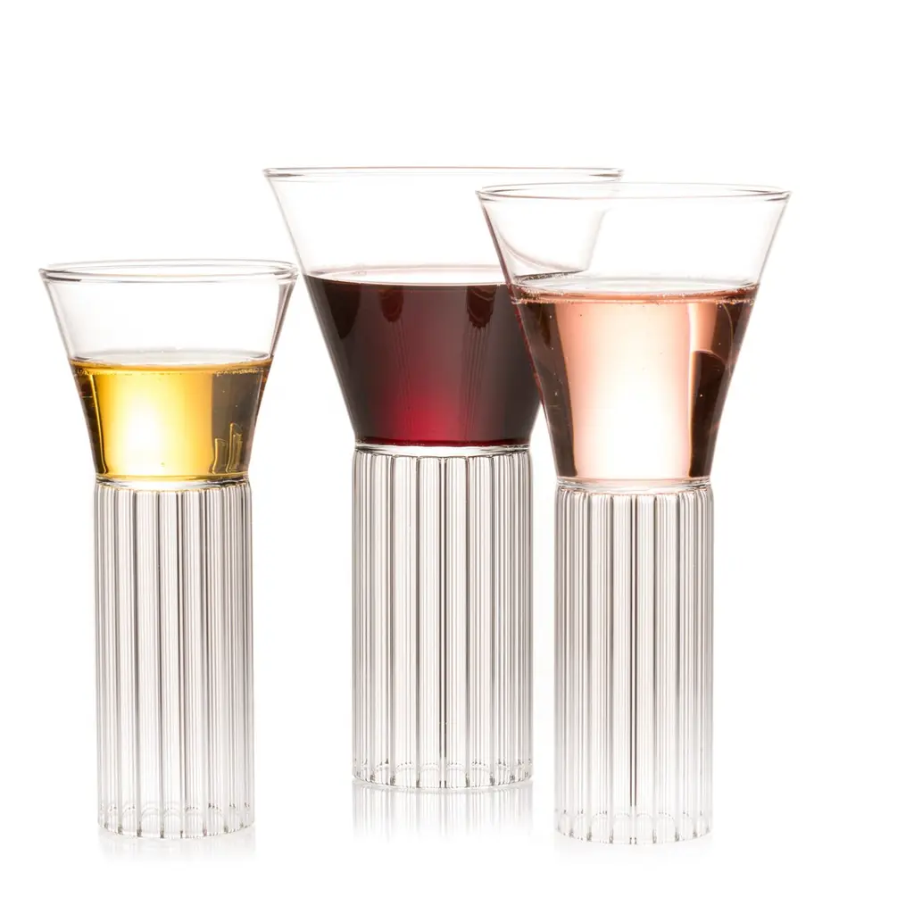 Sofia small cocktail wine glasses, set of twoWith the elegance of a forgotten time, the clear Czech contemporary Sofia collection glasses are a series of barware ideal for beverages from wine and water to martinis and other libations. Strikingly simple in form, the modern yet with a hint of Retro style, the Sofia small glasses will heighten the atmosphere of any event. With an innovative use of materials, the collection is made with the finest quality borosilicate glass and without the use of molds. These clear glasses are good for champagne, wine, water, liqueur, shots, espresso, port, and juice. The drinking glasses are good for both everyday and special occasions. Each piece is handcrafted by master glassblowers of borosilicate glass allowing for thermal resistance in a range of hot and cold applications. The collection is dishwasher safe. In stock.Also available in other sizes.Material: boroscilicate glassType: glassware Size: 100mL (4 fl oz) h.14.5cm (5 3/4in) ø6.5cmDesign: Felicia Ferrone, 2016Handcrafted in Czech Republic.