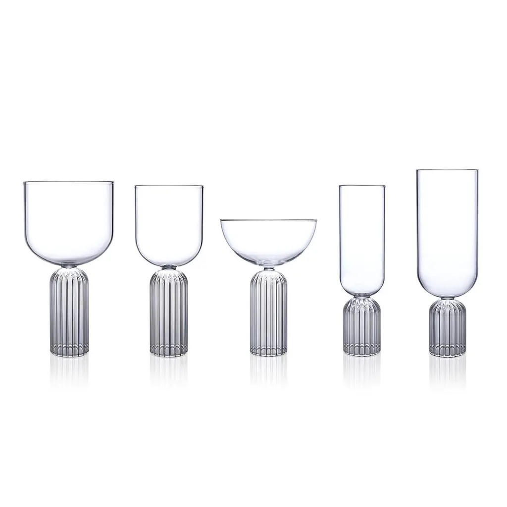 May large glasses, set of twoA pair of Czech contemporary handcrafted glasses perfect for everyday use.The May collection is inspired by the lightness of the early summer month of May. This contemporary collection with a nod to the past is ideal for making each day special.Each piece is handcrafted by master glassblowers of fluted Borosilicate glass allowing for thermal resistance for a range of hot and cold applications. The collection is dishwasher safe.Designed by: Felicia Ferrone, 2018Handcrafted: Czech Republic.Material: borosilicate glassType: glasswareSize: 400 mL (14 fl oz)Measures: H 17.5 cm, (7in) ø 9 cm.