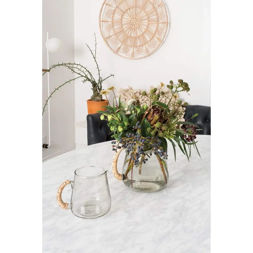 The pitcher is a great addition to your home decor. This pitcher can be used for your favorite floral arrangement or at a dinner party.