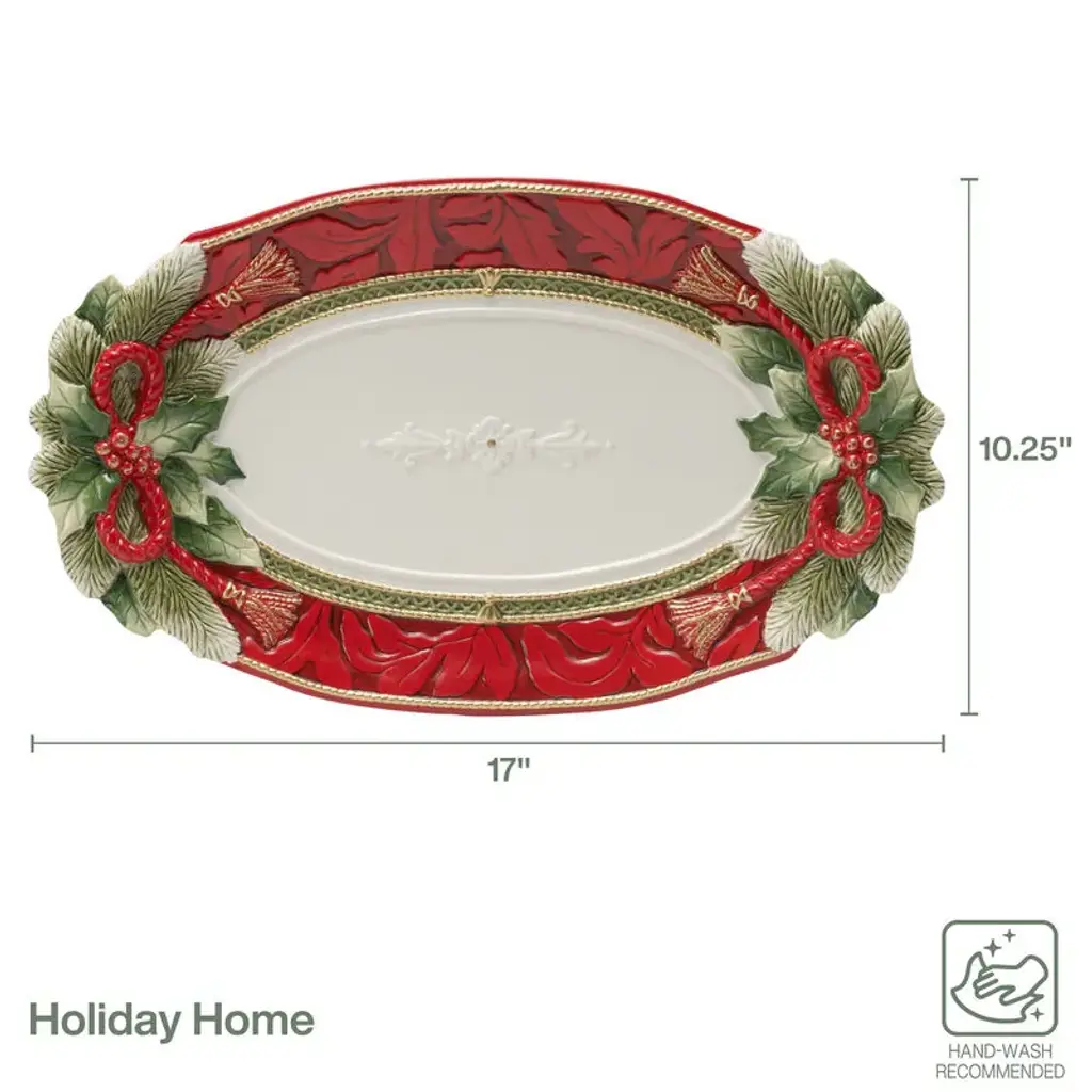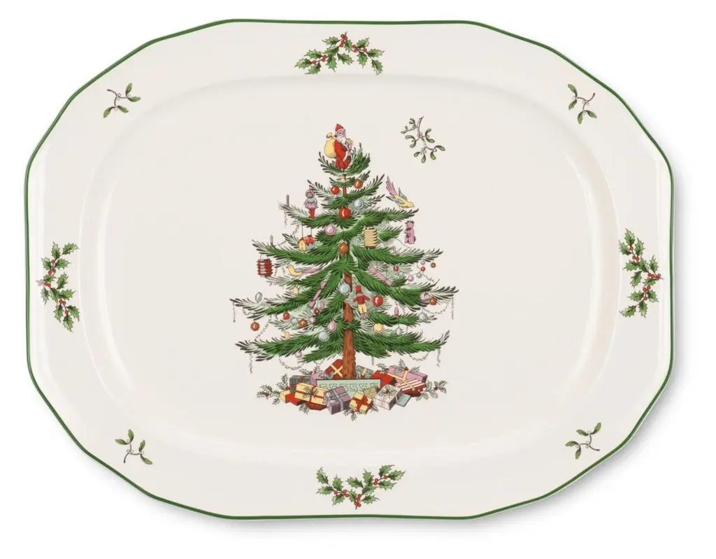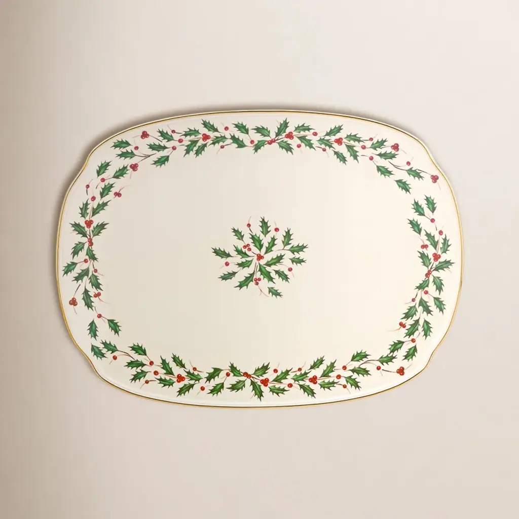 The Rectangular Platter coordinates with the Nutcracker collection with it's complimentary twigs, berries, ribbons, and ornaments.