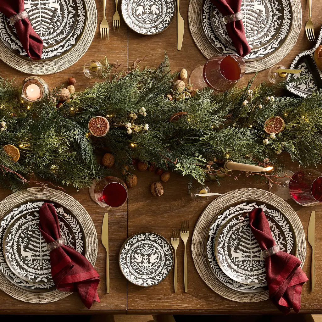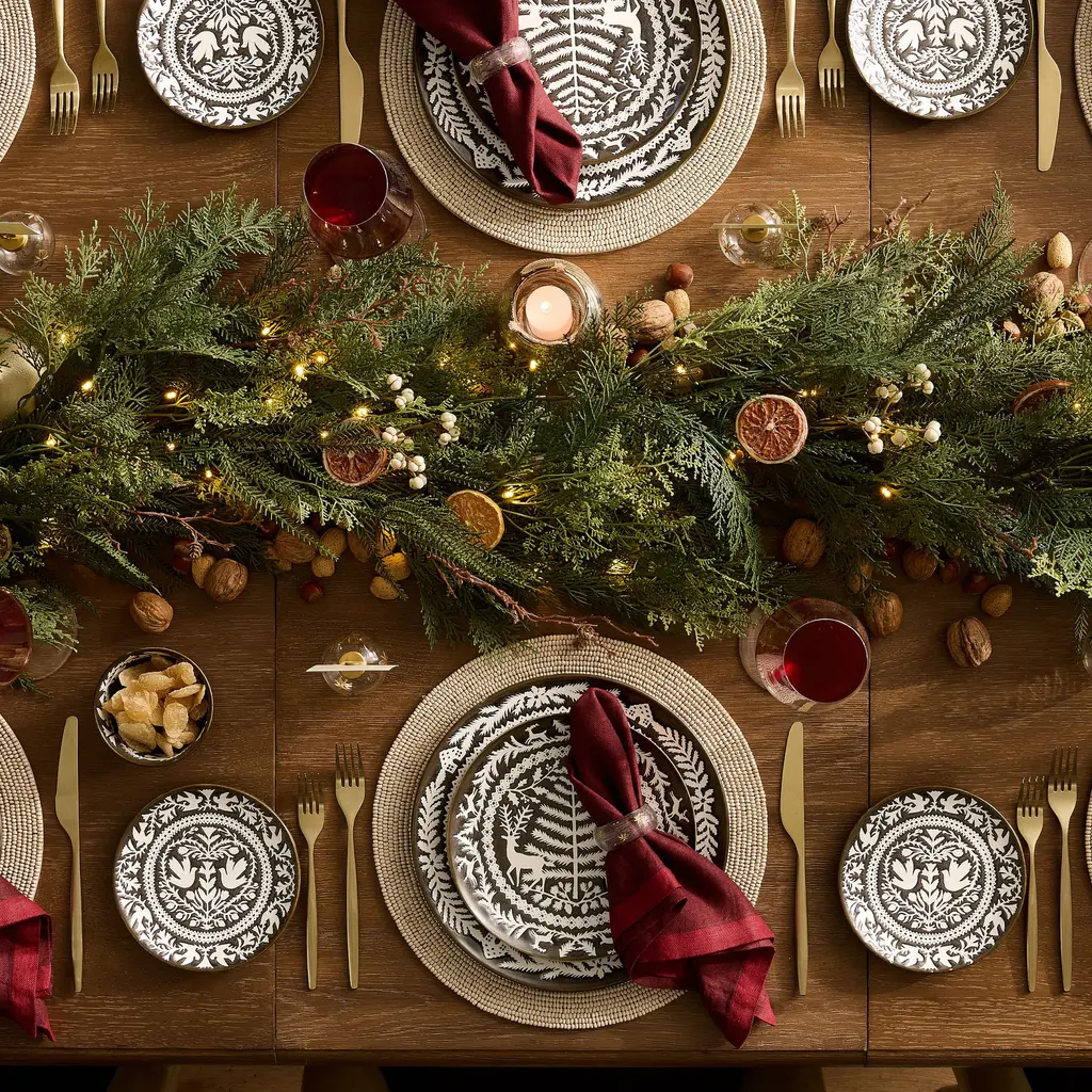 The traditional holiday design adds seasonal appeal to your tabletop. Made from stoneware for everyday dining. Sold as a set for a cohesive look. They’re dishwasher safe for easy cleanup.