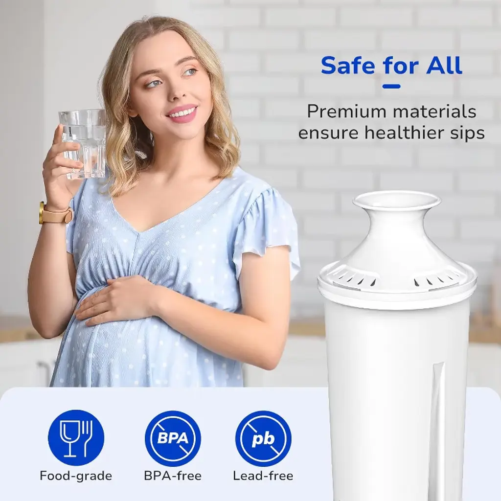 Fits all Brita water pitchers and dispensers, except Stream, and directly repalces the Brita classic OB03 standard water filter. No compatibility issues—just simple, reliable performance. Manufacturer names and part numbers are provided for compatibility reference only. NSF 53 and 42 certified, this advanced filter uses activated carbon and ion exchange resin to reduce health-related heavy metals like lead and chromium, and improve taste by removing chlorine, iron, and more—delivering fresh, sofer water every time. Eliminate unwanted odors with our improvedd carbon filter. Its finely porous carbon particles remove chlorine aftertaste, and unpleasant odors better than traditional large carbon filters. Enjoy consistently fresh and great-tasting water. Enjoy the same high-quality performance as the original filters but at a more budget-friendly option! Each filter lasts up to 2 months or filters 40 gallons, helping you cut back on bottled water while enjoying crisp, clean water every day. No tools required! Simply remove the used filter and insert the new one into the reservoir by lining up the groove in the filter with the ridge in the reservoir. Press firmly for a tight seal. Enjoy a hassle-free replacement process that saves you time and effort.