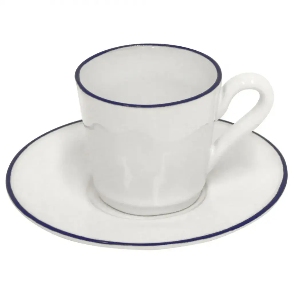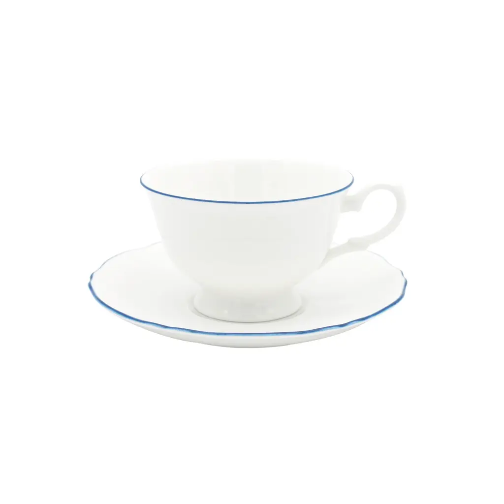 Filet Cobalt Breakfast Cups & Saucers 13 Oz - 7" Dia Set Of 2