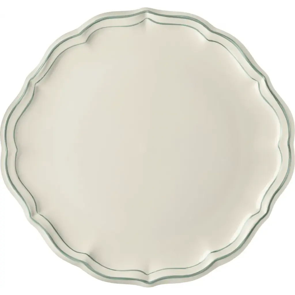 Timeless tableware, sleek and elegant, enhanced by hand-painted banding and the classic scalloped edge. Located near the Loire Valley castles, the Faïencerie de Gien has been synonymous with prestigious faience tableware and decorative objects since its founding in 1821. Gien pieces are renowned for their warm white clays decorated with traditional motifs reminiscent of the French countryside.