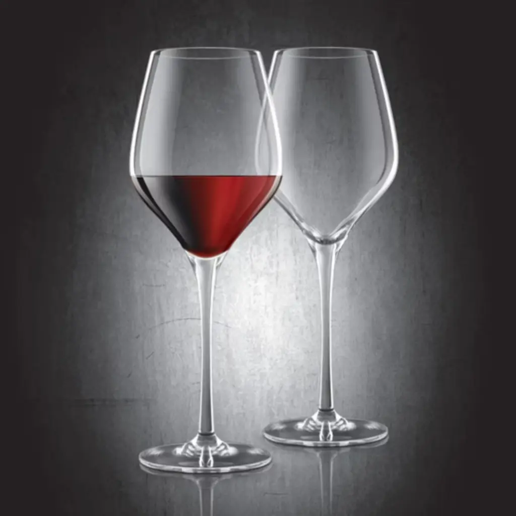 Our glass is meticulously crafted with titanium reinforcement, offering exceptional resistance to chips and scratches. The addition of barium in place of lead creates a brilliantly clear and lightweight crystal, enhancing the visual appeal and ease of handling. These wineglasses feature a modern v-shaped bowl and a one-piece pulled stem, presenting a seamless and contemporary look that complements any table setting. The ultra-fine cold-cut rim ensures an optimum mouthfeel, making every sip a delightful experience. Designed to maximize the flavor and aroma of your winery, these glasses elevate your tasting sessions, whether you prefer robust reds, crisp whites, or delicate rosés. Enjoy the convenience of easy cleaning, as these glasses are dishwasher safe and built to withstand temperature shocks, maintaining their pristine condition wash after wash. Each glass is individually blown and handcrafted, adding a unique touch of artistry to your collection. Presented in a stylish gift box, these lead-free crystal wineglasses make the perfect gift for enthusiasts, bringing a touch of elegance and sophistication to any occasion. Indulge in the perfect blend of durability, clarity, and beauty with our premium wineglasses.