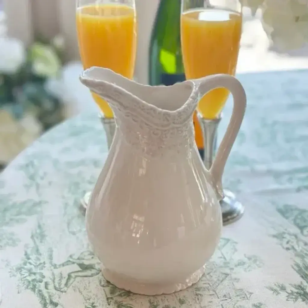 Introduced over a decade ago, Finezza (meaning "refined") is one of our best selling collections year after year. Beloved for its intricate lace design, it is beautiful, durable and easy care. The pieces are also a favorite of exclusive event planners. The Finezza Small Pitcher is perfect for a special celebration or quiet dinner with your family and friends. So understated and refined. Italian ceramic, handmade in the Veneto region of Italy. Founded in 1997 by Ann Skidmore, Arte Italica is a story of one woman's passion for Italian history, culture, art, and vintage pewter. Today, Arte Italica is one of the leading importers of European tabletop and home accessories products in the United States. Every piece is handmade and designed so that they can easily be mixed and matched to create a timeless, classic, and effortless look.