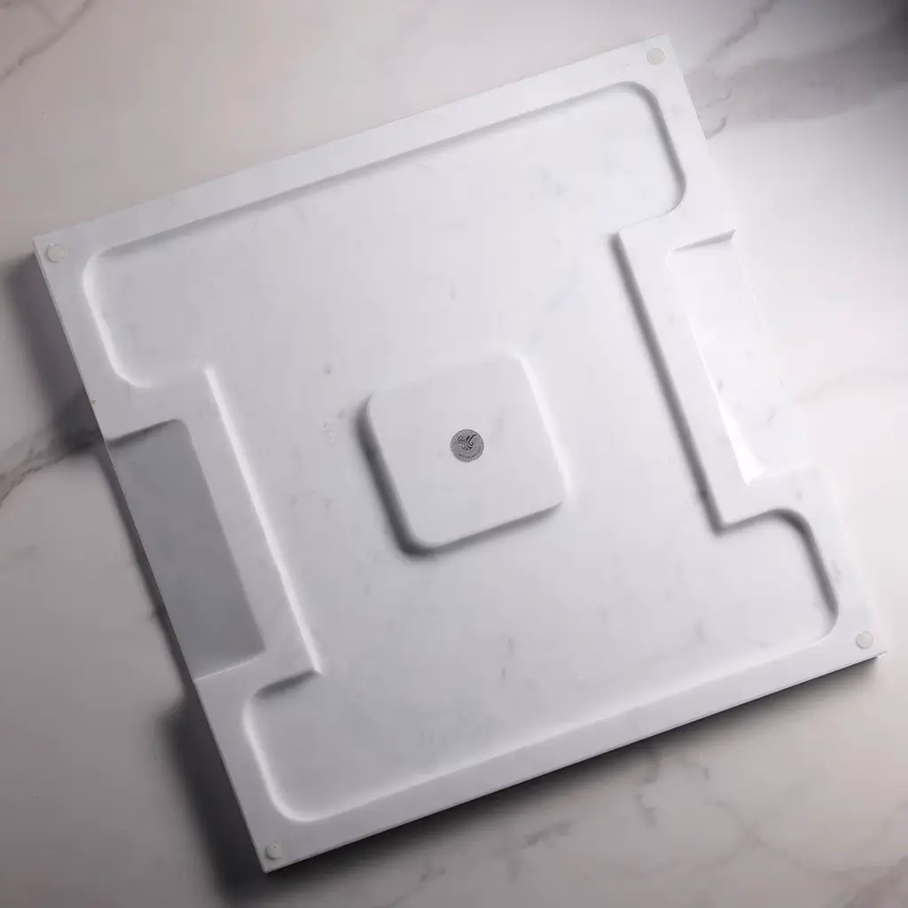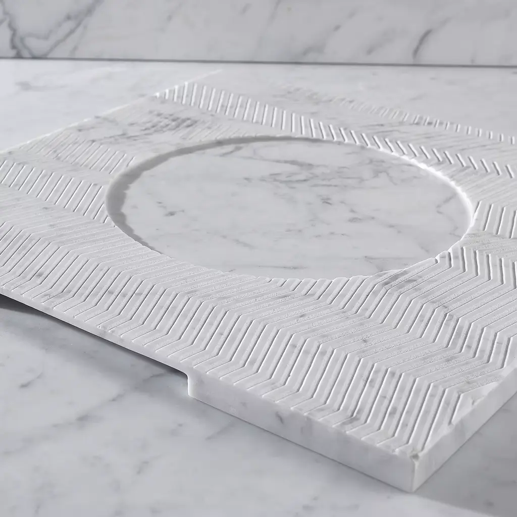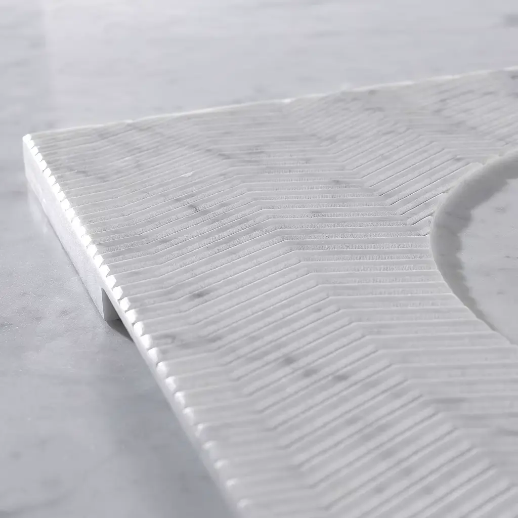 Inspired by the beating heart of the Italian Renaissance, this fine dining plate by Rita Anna Venuta is part of the Piatto Q Collection. Fashioned of White Carrara marble, the plate features a "herringbone" pattern, the same masonry technique used in the construction of Brunelleschi's dome, a self-supporting spiral technique never before used in buildings. Embracing imperfection as a mark of authenticity, this piece will effortlessly elevate a fine dining experience.
