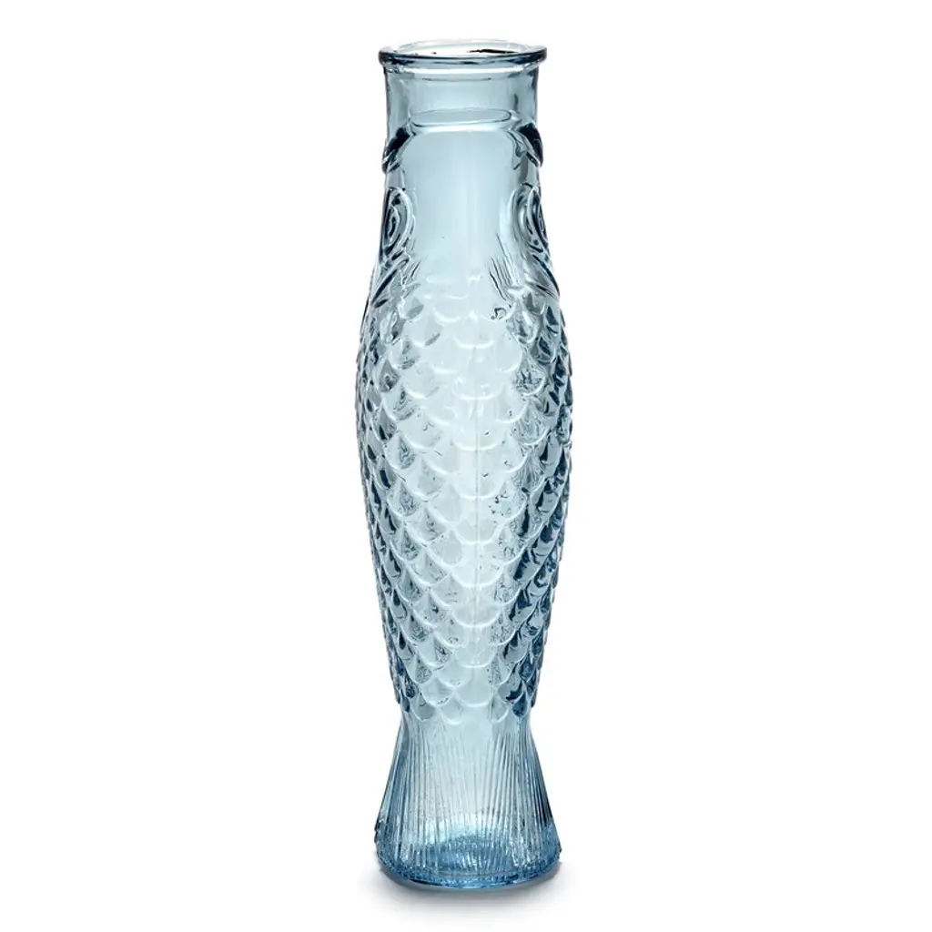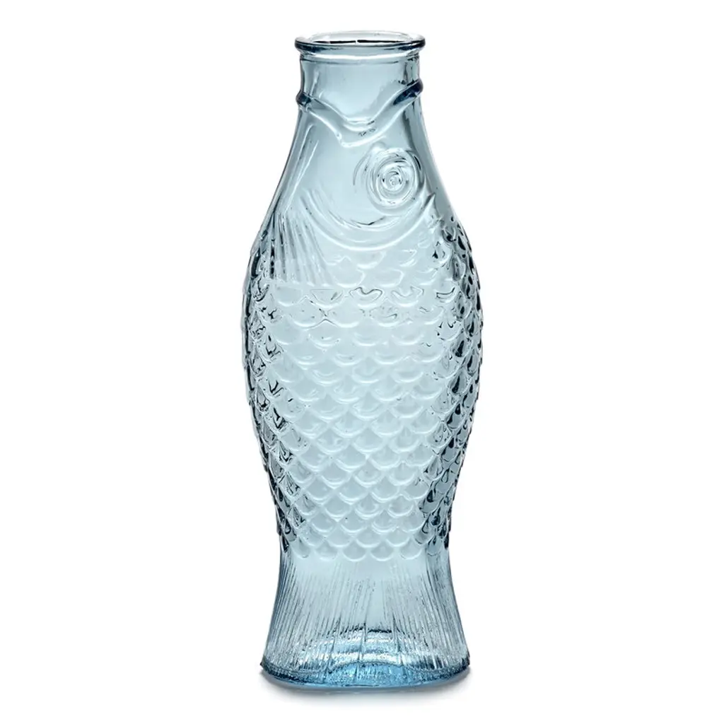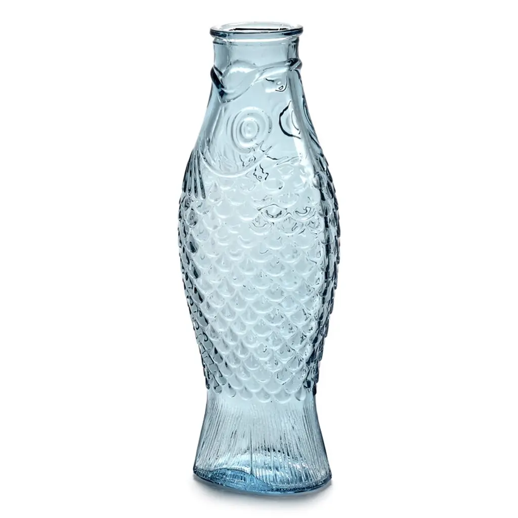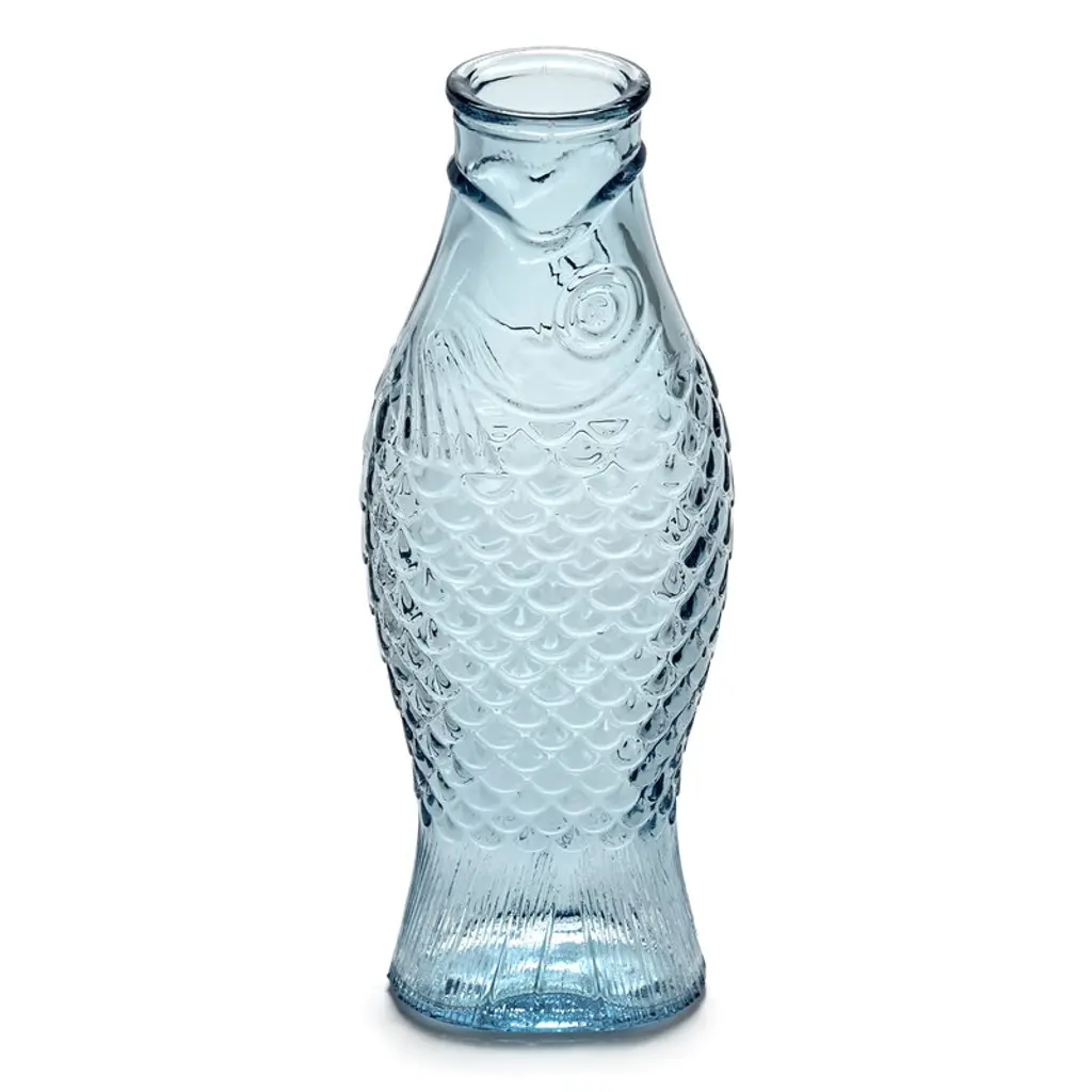 The Fish & Fish bottle by Serax charms with its fish-like appearance and distinctive, delicate blue glass. Resembling a herring, the playful bottle can be used as a carafe for serving drinks or as a vase for flowers but it also brings joy as a decorative object as such. Designed by Paola Navone, the Fish & Fish collection brightens up the table setting with a good mood and a hint of color.