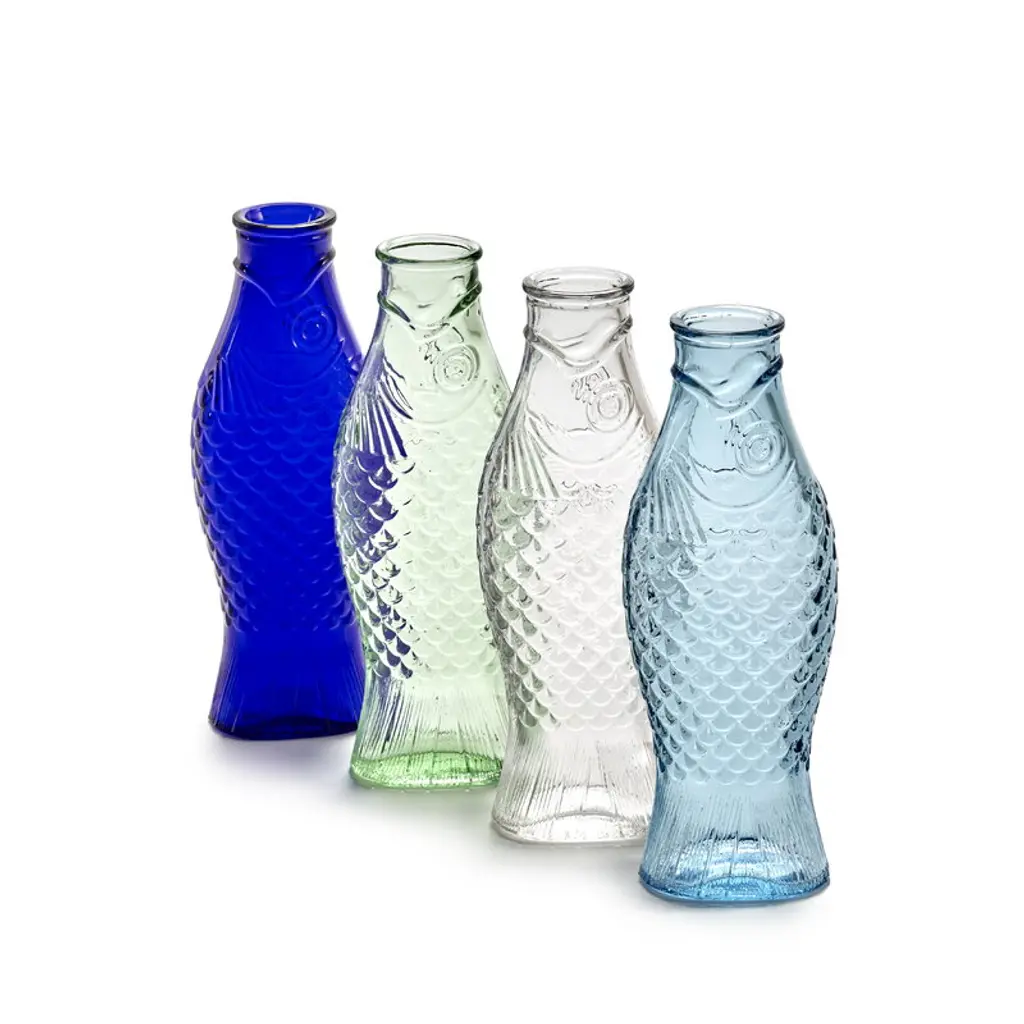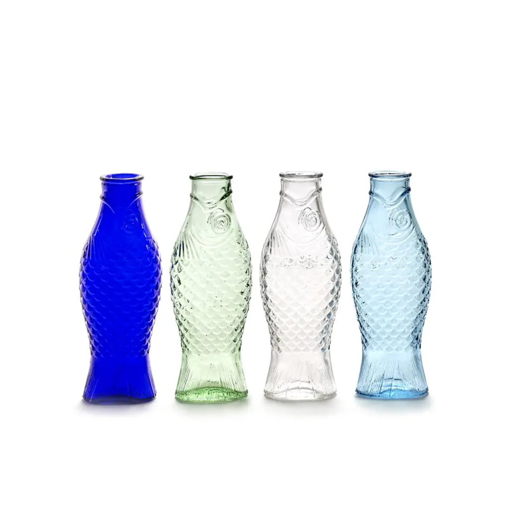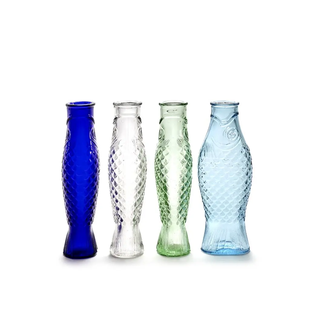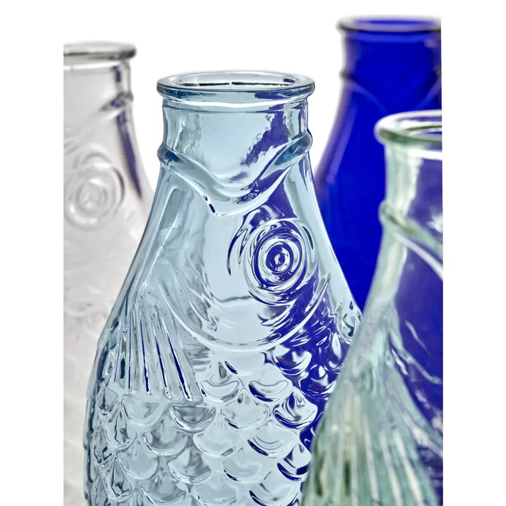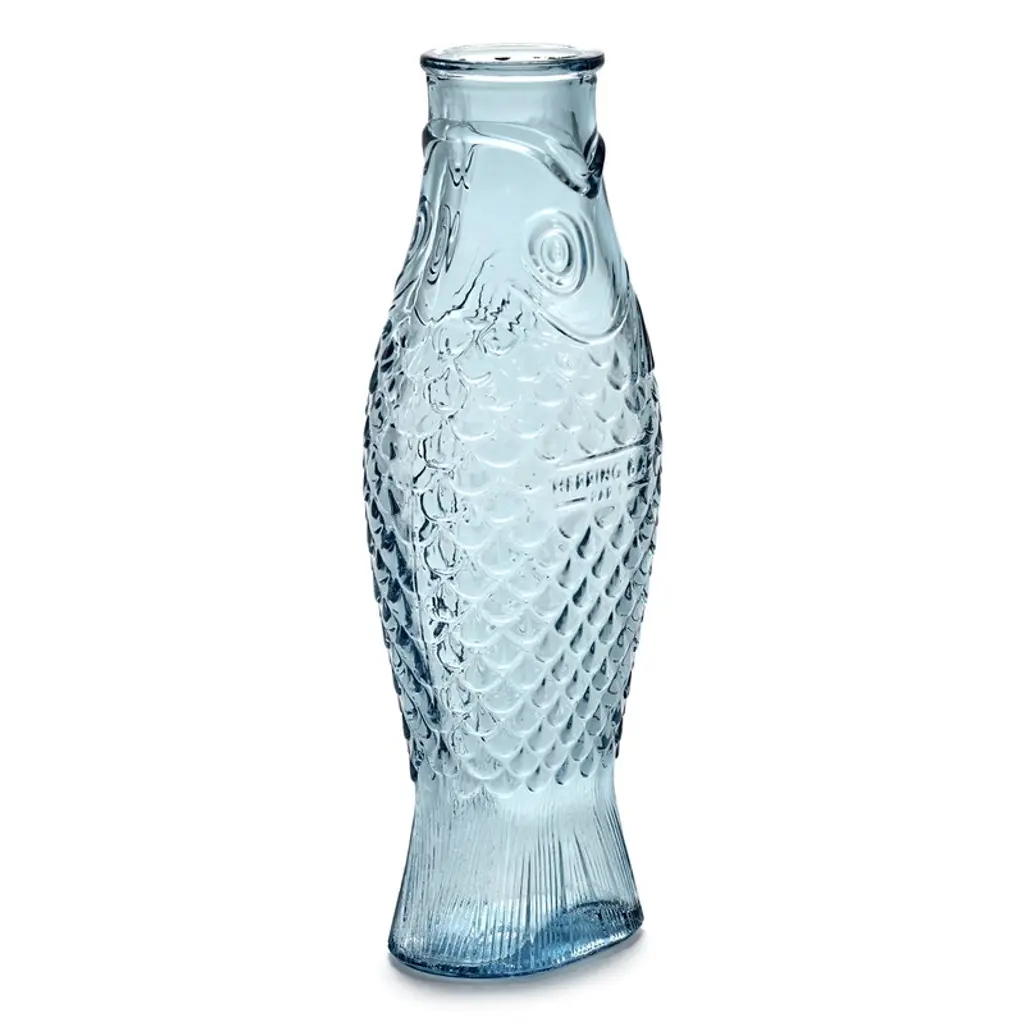 The Fish & Fish bottle by Serax charms with its fish-like appearance and distinctive, delicate blue glass. Resembling a herring, the playful bottle can be used as a carafe for serving drinks or as a vase for flowers but it also brings joy as a decorative object as such. Designed by Paola Navone, the Fish & Fish collection brightens up the table setting with a good mood and a hint of color.
