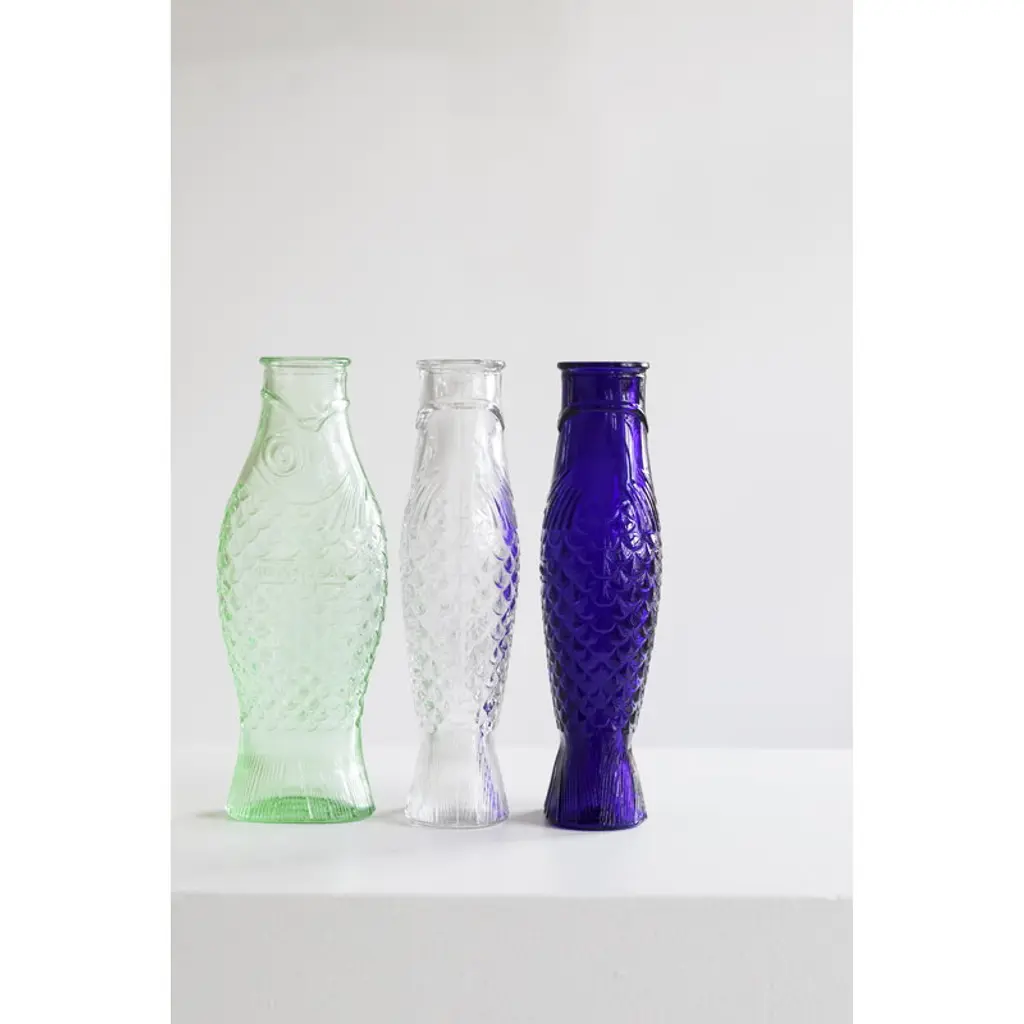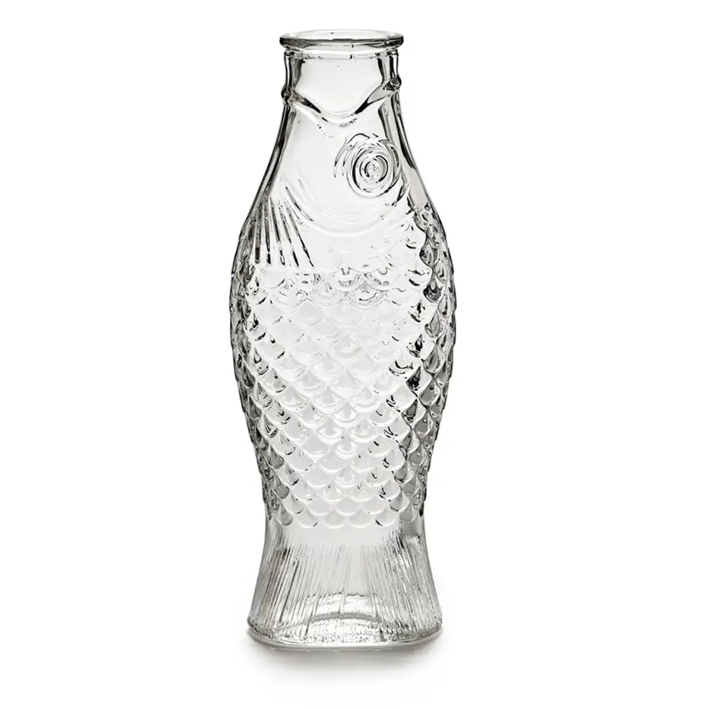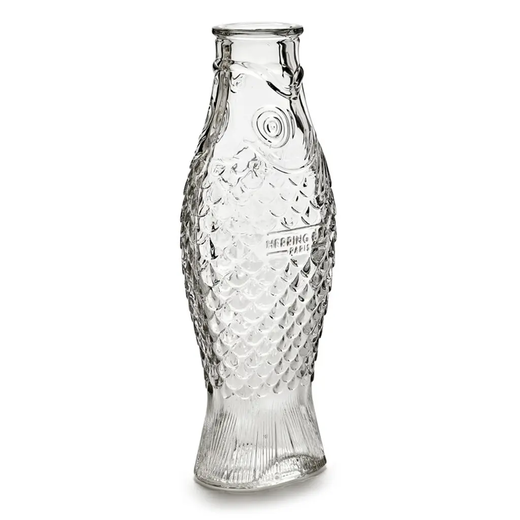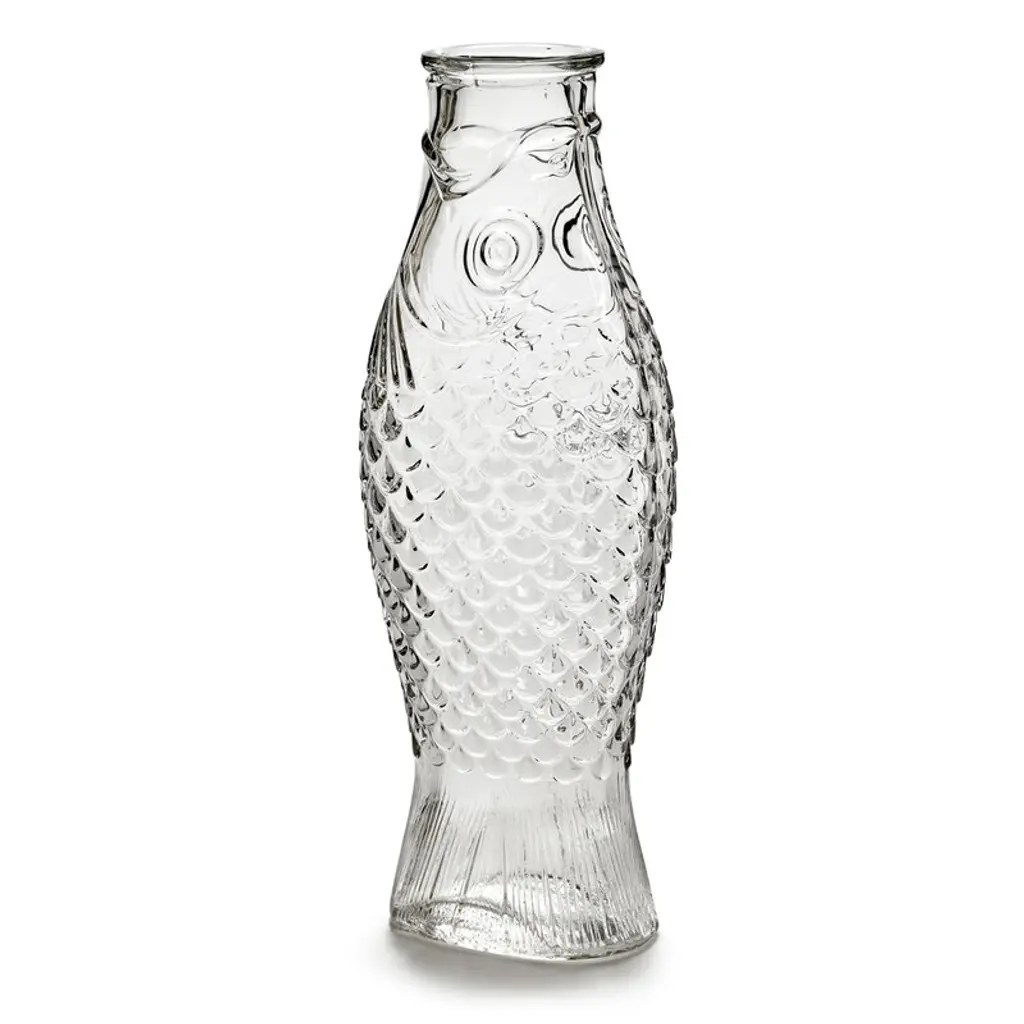 The Fish & Fish bottle by Serax charms with its fish-like appearance. Resembling a herring, the playful bottle can be used as a carafe for serving drinks or as a vase for flowers but it also brings joy as a decorative object as such. Designed by Paola Navone, the Fish & Fish collection brightens up the table setting with a good mood and a hint of color.