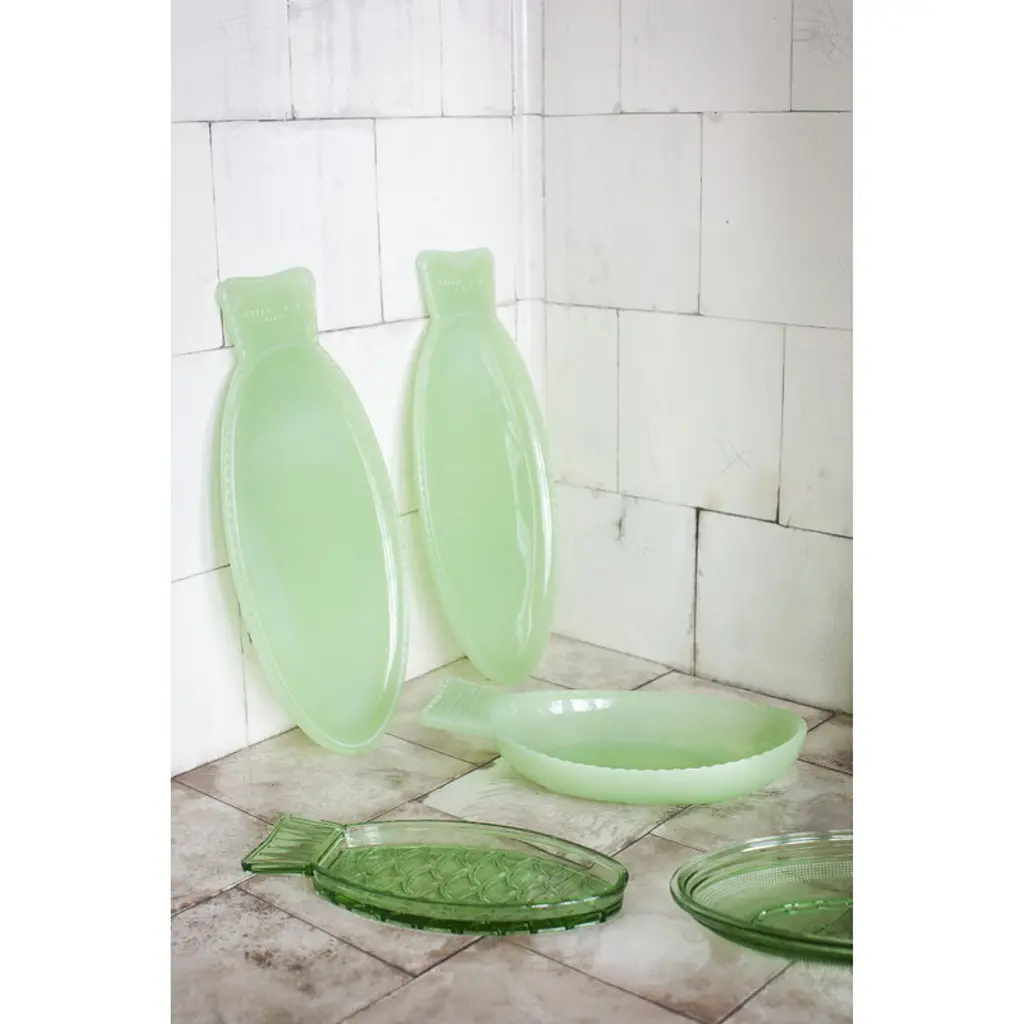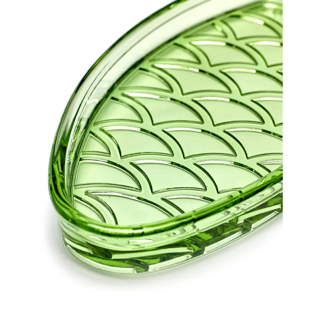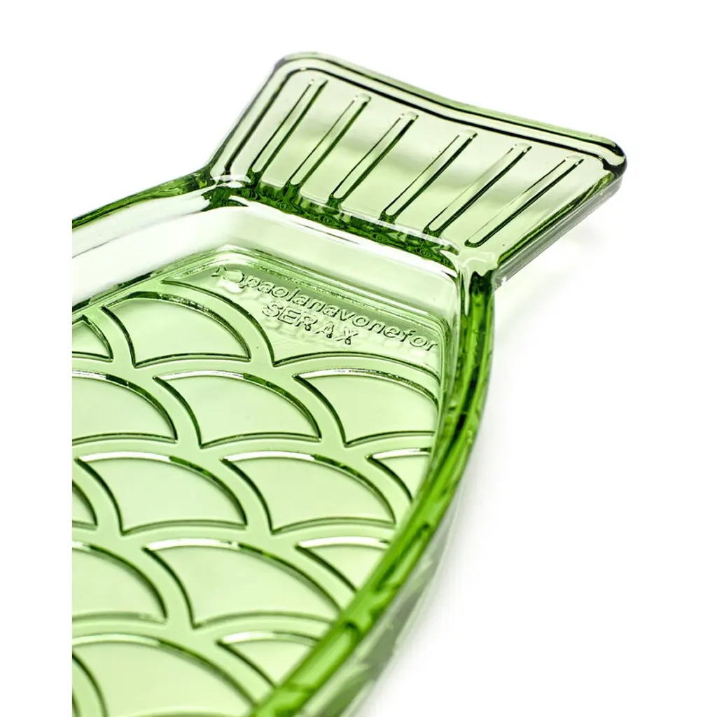 The Fish & Fish serving dish by Serax charms with its fish-like appearance and distinctive, delicate green glass. Resembling a herring, the playful plate can be used for serving food or displaying your favorite items but it also brings joy as a decorative object as such. Designed by Paola Navone, the Fish & Fish collection brightens up the table setting with a good mood and a hint of color.