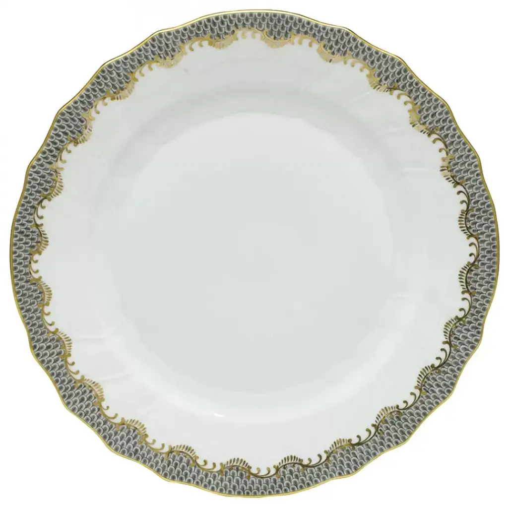 While it has often been used as a complement to Herend's patterns, this dramatic decorative border really comes into its own when it gets top billing. Now the biggest porcelain manufactory in Europe, Herend was founded in 1826 to produce earthenware in the small Hungarian village for which it was named. At the time, Hungary was flooded with low-cost pottery, but in 1839, Mor Fischer became the Manufactory’s new owner and he decided to focus on producing dinnerware replacement pieces for Europe’s royal families to complement their valuable porcelain patterns from Germany and the Far East. As his client base grew, Fischer commissioned his artists to begin designing dinnerware patterns of their own. Queen Victoria’s 1851 purchase of a large set for Windsor Castle was a milestone, setting the stage for aristocrats throughout Europe to clamor for Herend in their estates. In the 1850s, Herend added meticulously-crafted figurines to its creations. Herend’s trademark fishnet pattern, which is widely recognized and prized as Herend’s signature design, started in 1858 when an artist who was intrigued with a Chinese plate’s fish scale design painted it onto a rooster figurine to imitate feathers.