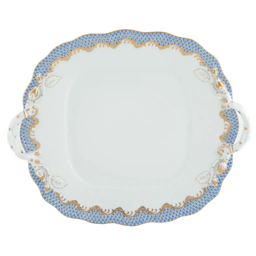 Fish Scale Gray Square Cake Plate With Handles 9.5 In Sq