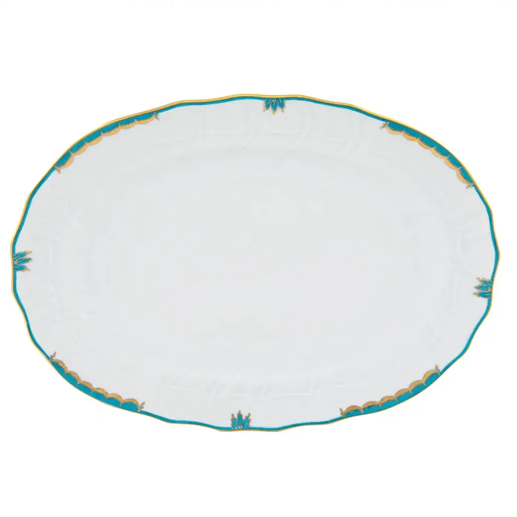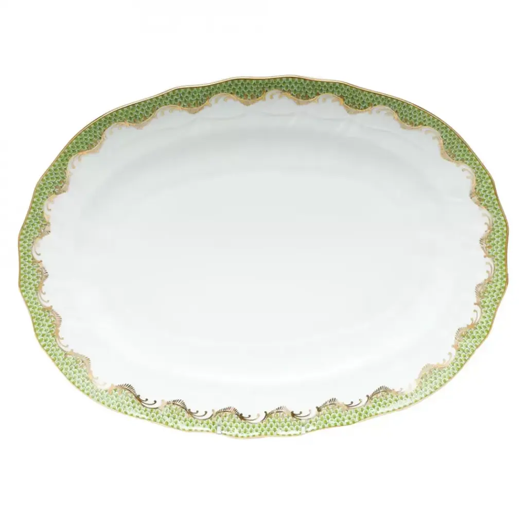 While it has often been used as a complement to Herend's patterns, this dramatic decorative border really comes into its own when it gets top billing. Fish scale is available in multiple shapes in 8 colors: raspberry, rust, brown, gold, two shades of blue and two shades of green. Hand painted in Hungary. Now the biggest porcelain manufactory in Europe, Herend was founded in 1826 to produce earthenware in the small Hungarian village for which it was named. At the time, Hungary was flooded with low-cost pottery, but in 1839, Mor Fischer became the Manufactory’s new owner and he decided to focus on producing dinnerware replacement pieces for Europe’s royal families to complement their valuable porcelain patterns from Germany and the Far East. As his client base grew, Fischer commissioned his artists to begin designing dinnerware patterns of their own. Queen Victoria’s 1851 purchase of a large set for Windsor Castle was a milestone, setting the stage for aristocrats throughout Europe to clamor for Herend in their estates. In the 1850s, Herend added meticulously-crafted figurines to its creations. Herend’s trademark fishnet pattern, which is widely recognized and prized as Herend’s signature design, started in 1858 when an artist who was intrigued with a Chinese plate’s fish scale design painted it onto a rooster figurine to imitate feathers.