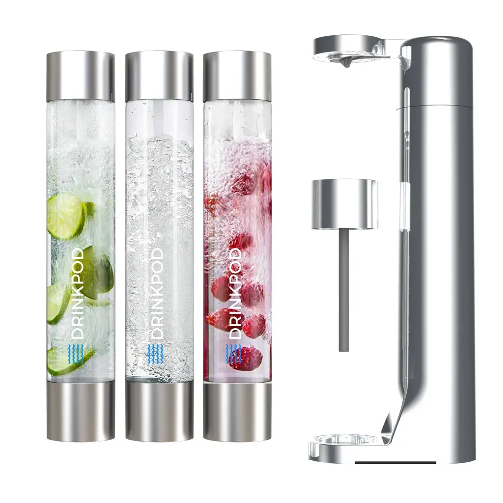 Make your drinks more exciting with the FizzPod 1-touch home sparkling soda maker machine. This convenient and lightweight machine allows you to carbonate your favorite homemade drinks with the push of a button. With its 2-step gas relief and split-injection pipe, you can create fizzy water, juice, coffee, tea, cocktails, wine, or even re-fizz beer. The cylindrical screw design makes it easy to attach and detach the bottle, while the machine's compatibility with all North American 60L CO2 cartridges provides versatility at home.Features: