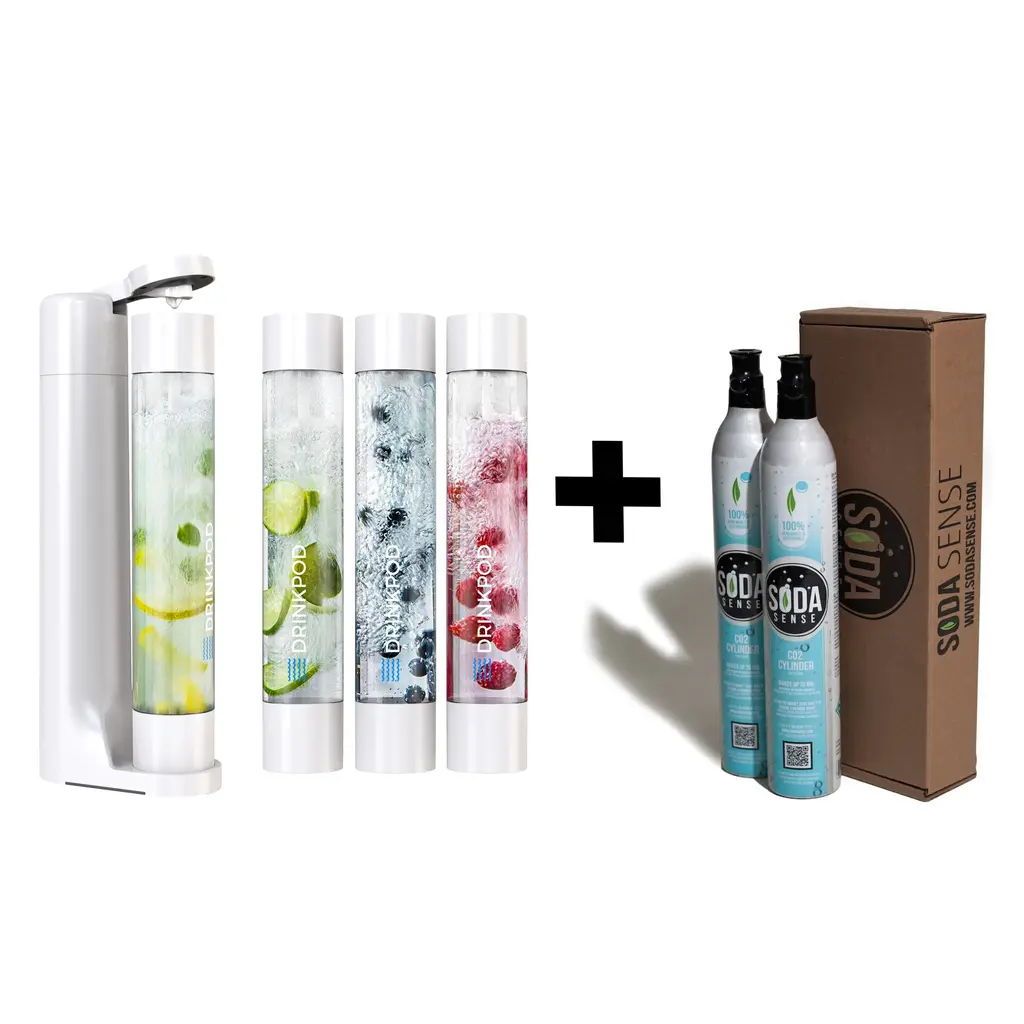 Fizzpod One Touch Home Sparking Soda Maker Machine With 3-Bottles & 2 C02 Cylinders (White) - White