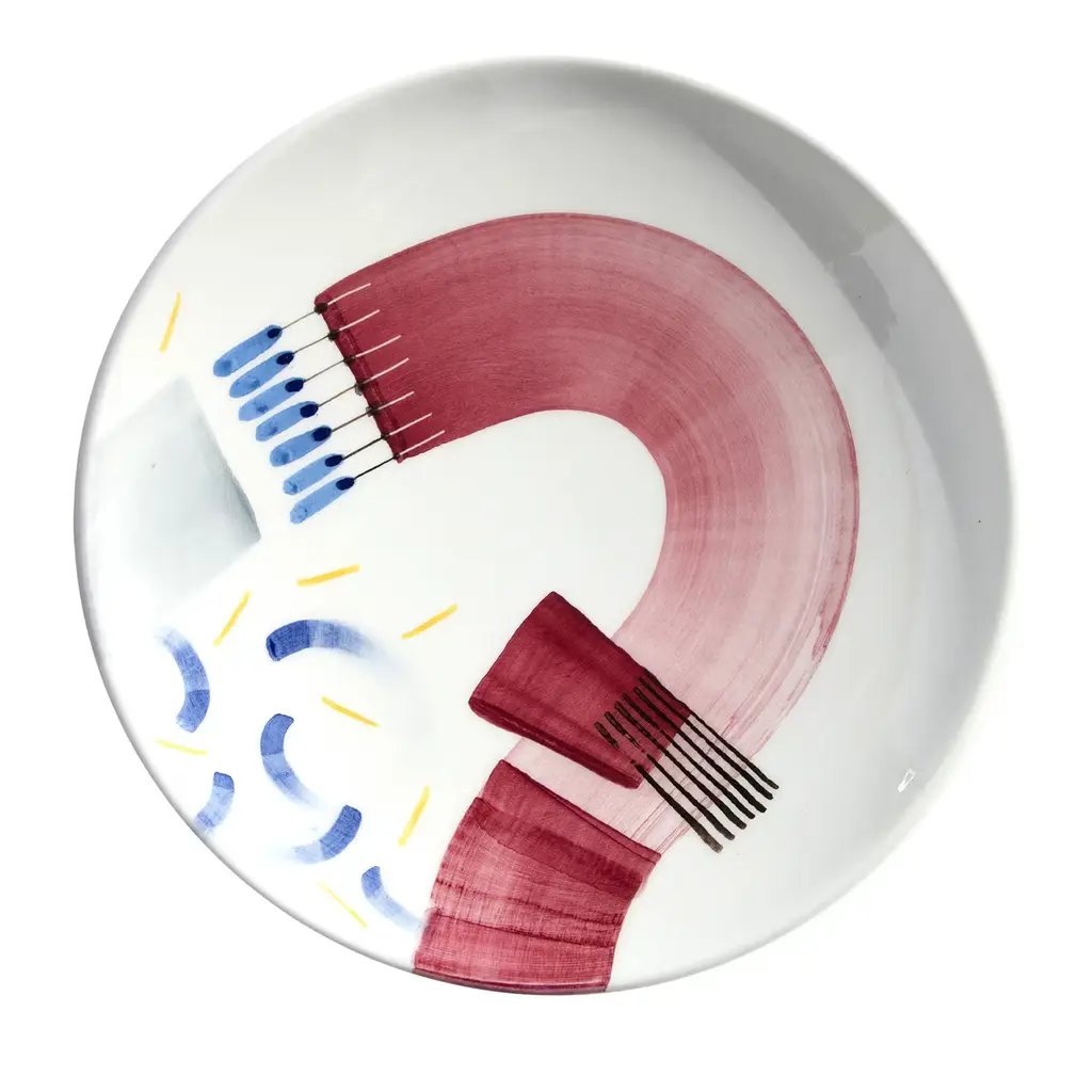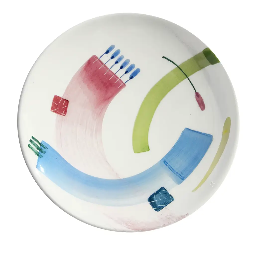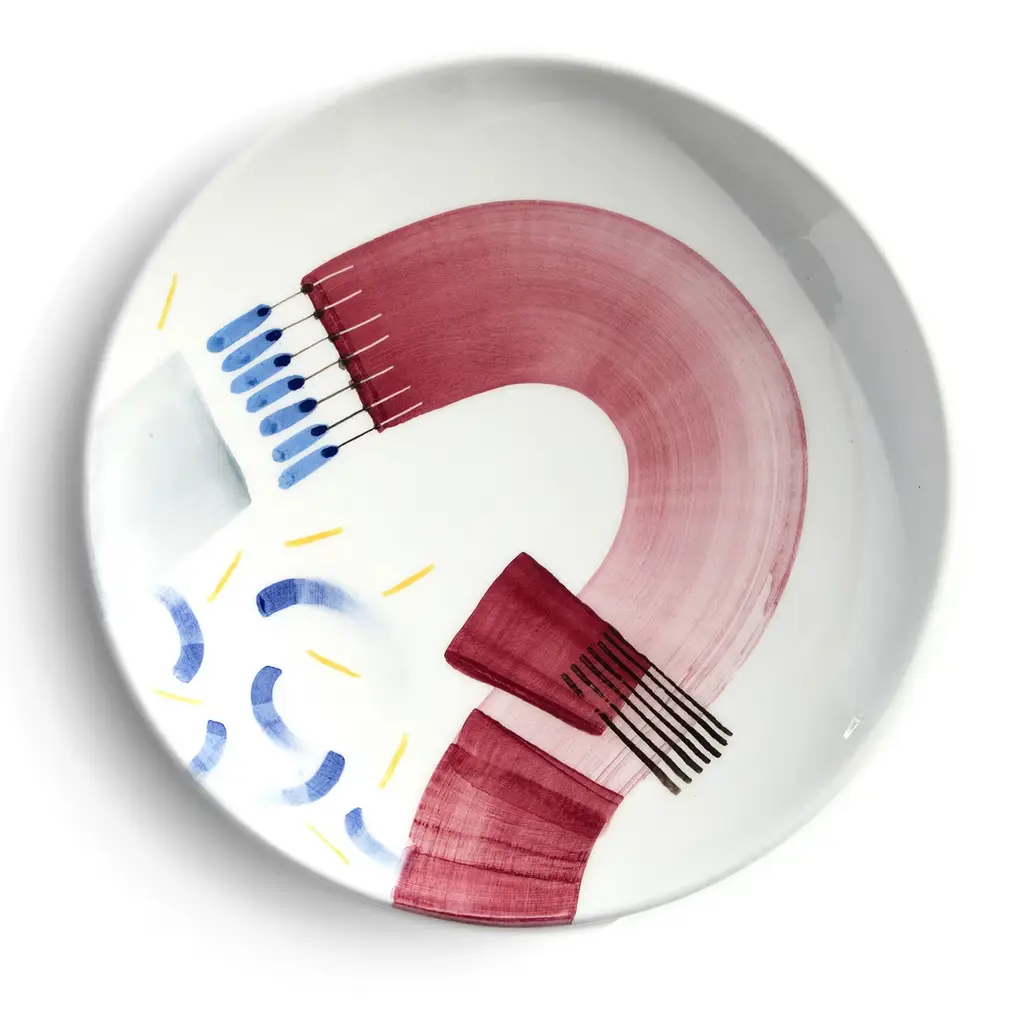 This set of two dinner and soup plates is one of the designs of the Divertissement collection. This design is inspired by the reflection on the water of pink flamingos and their long elegant necks. Each piece is unique and entirely handmade painted, the design may slightly vary. Please, contact the Concierge for further information and options.