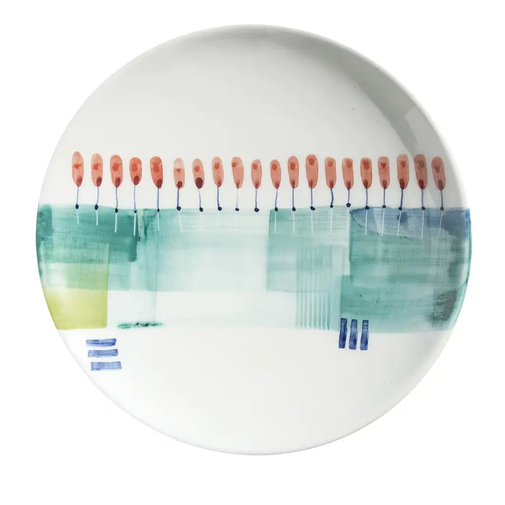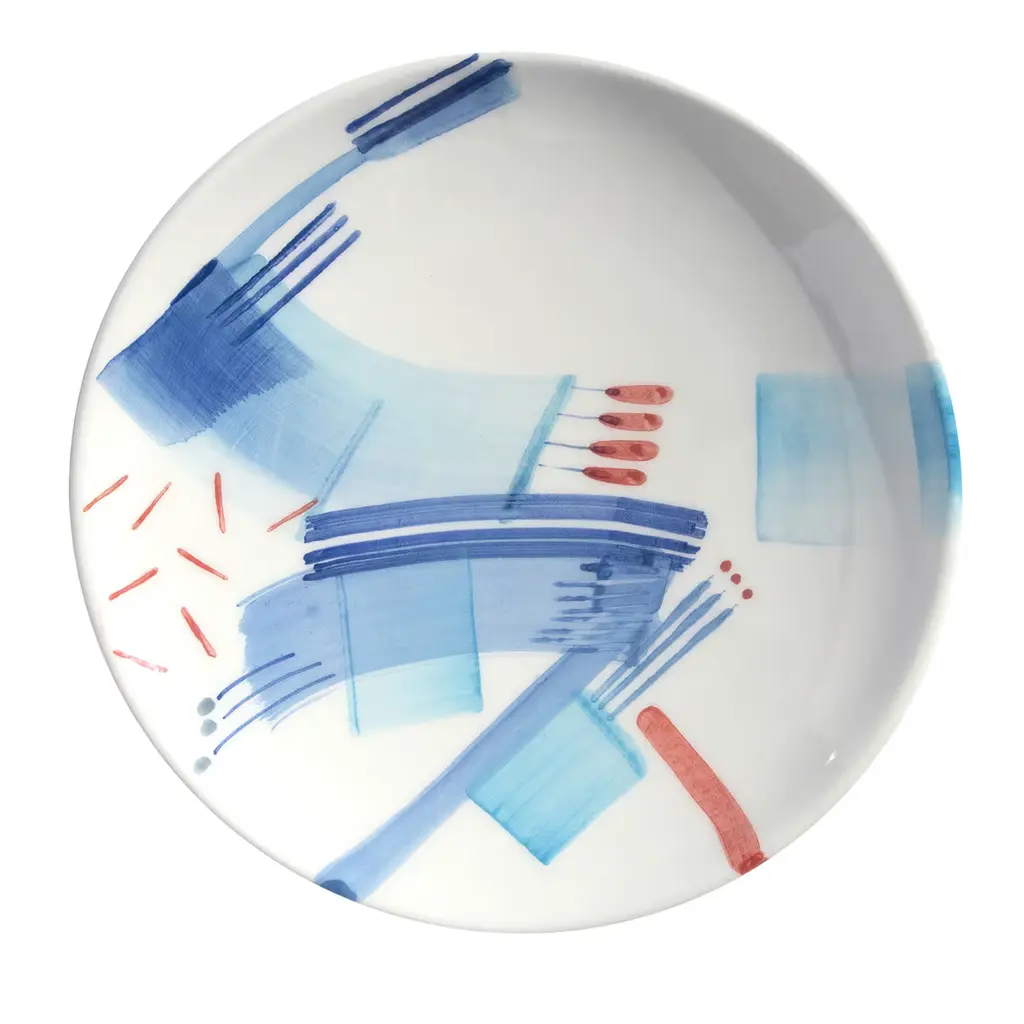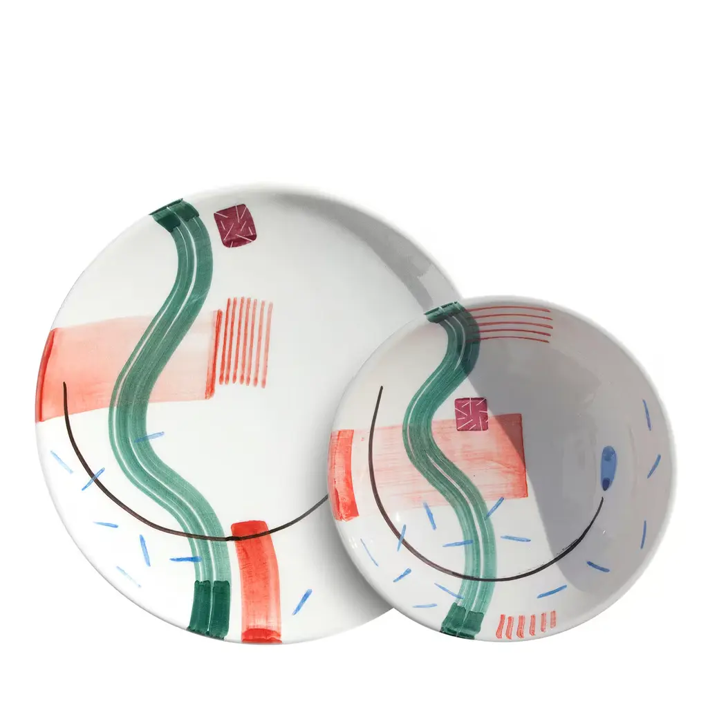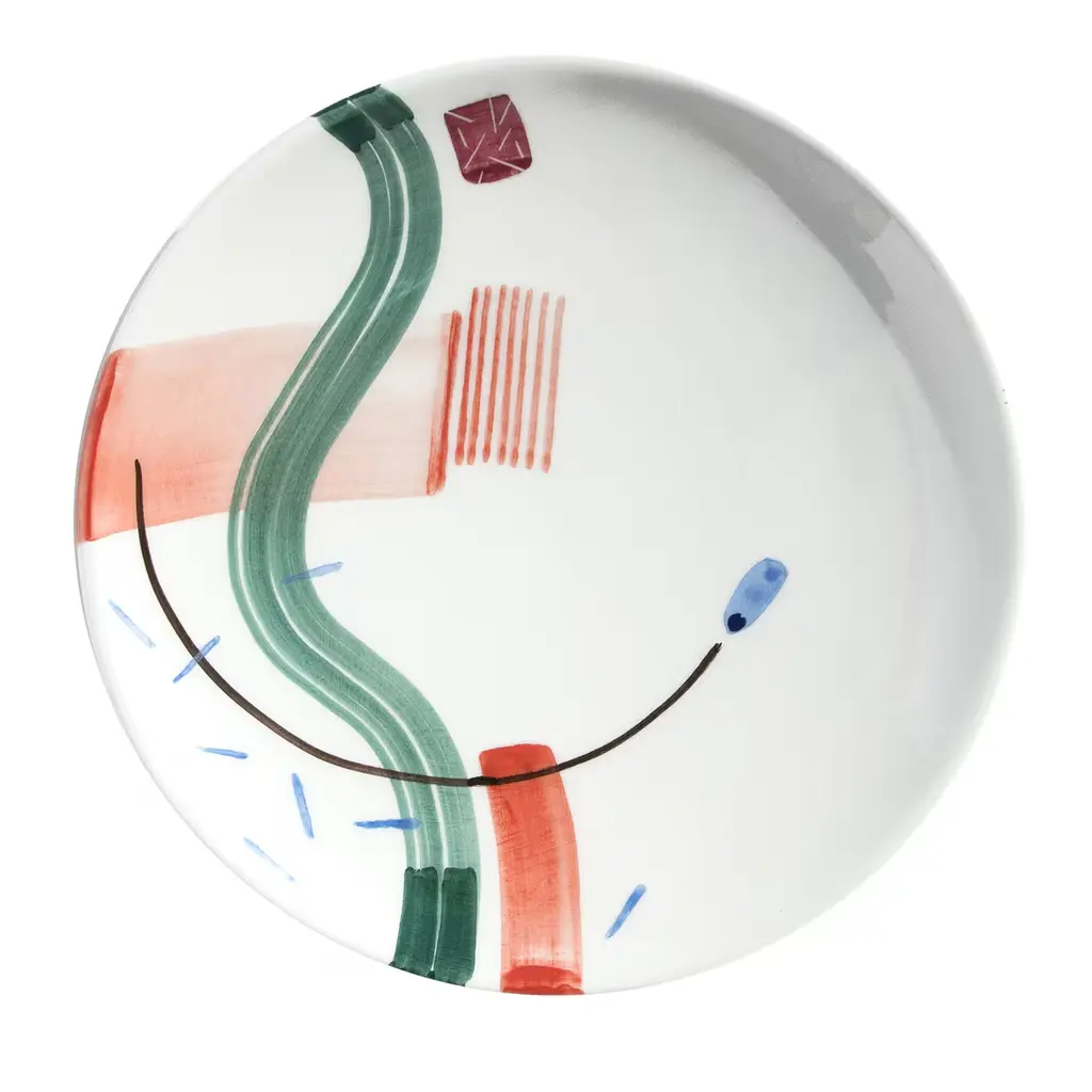 This set of two dinner and soup plates is one of the designs of the Divertissement collection. This design is inspired by the reflection on the water of pink flamingos and their long elegant necks. Each piece is unique and entirely handmade painted, the design may slightly vary. Please, contact the Concierge for further information and options.