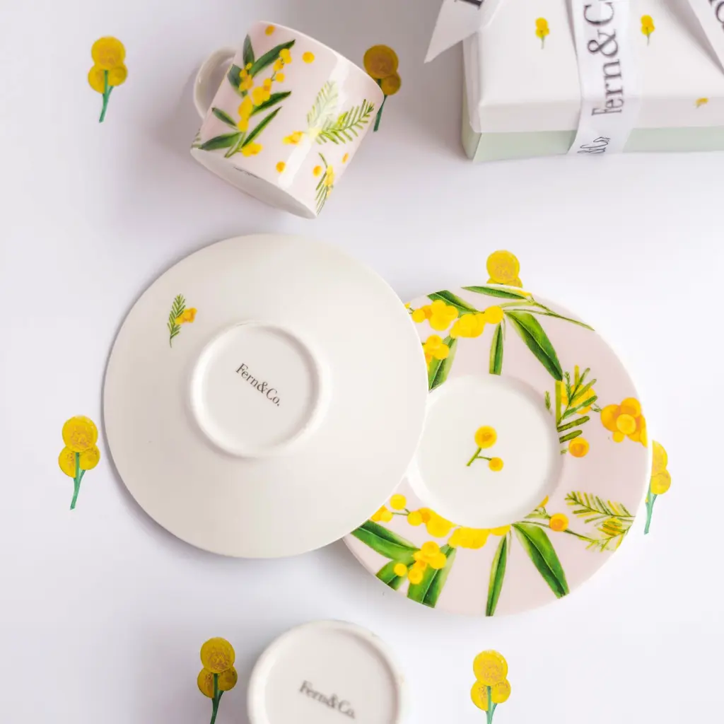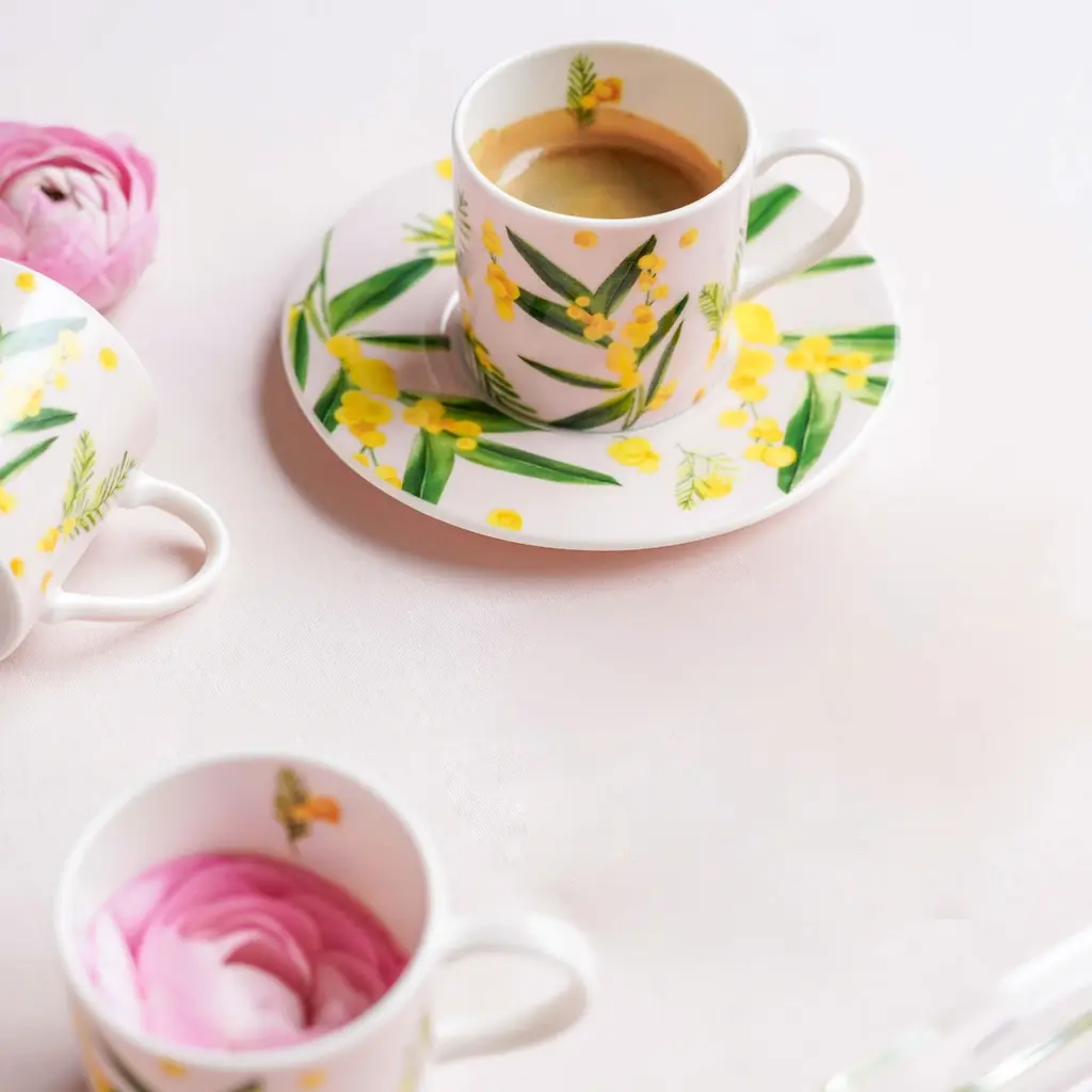 The Fleur de Mimosa collection takes inspiration from the delicate structure of mimosa. With the light and pleasant scent of mimosa, this collection transforms your coffee hours into unforgettable experiences. Adorned with elegant patterns and vibrant colors, it brings joy to every moment.