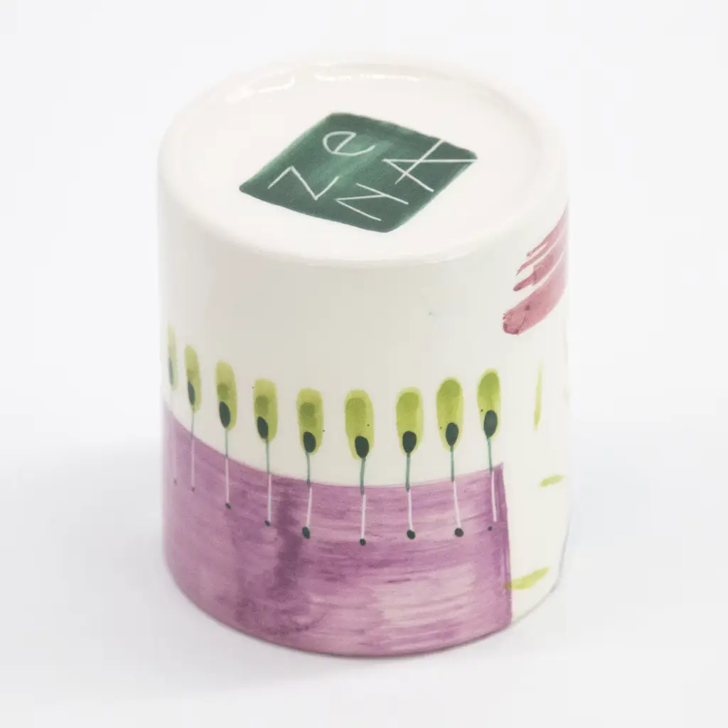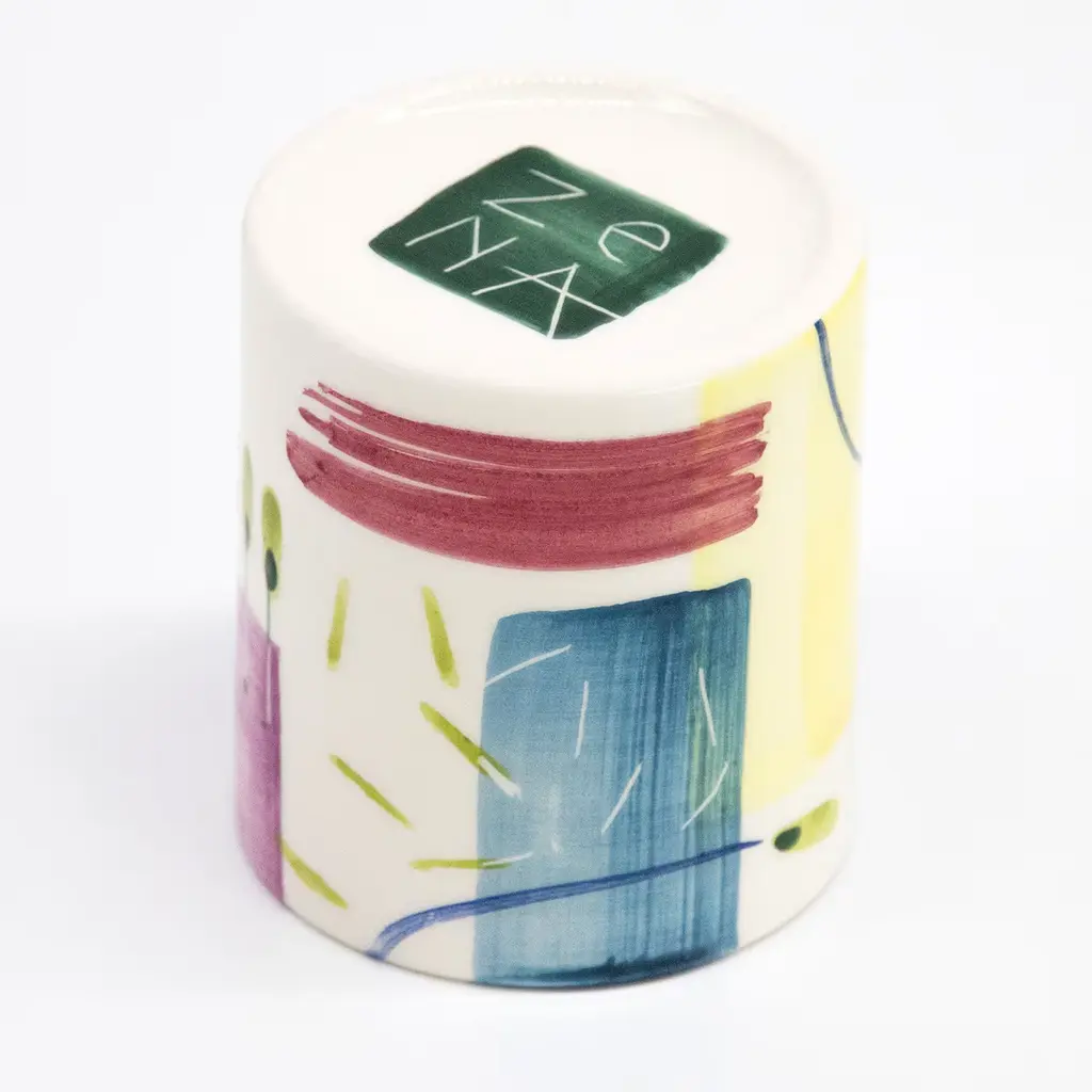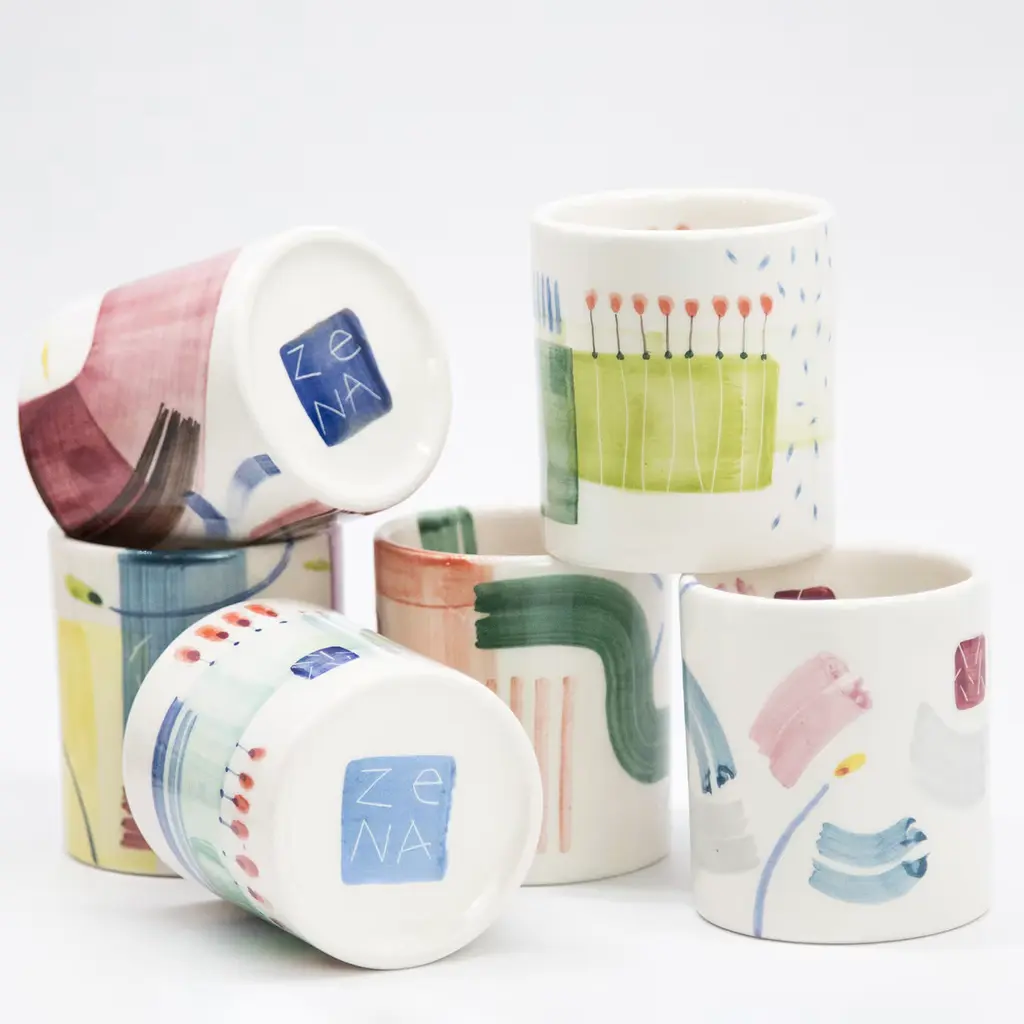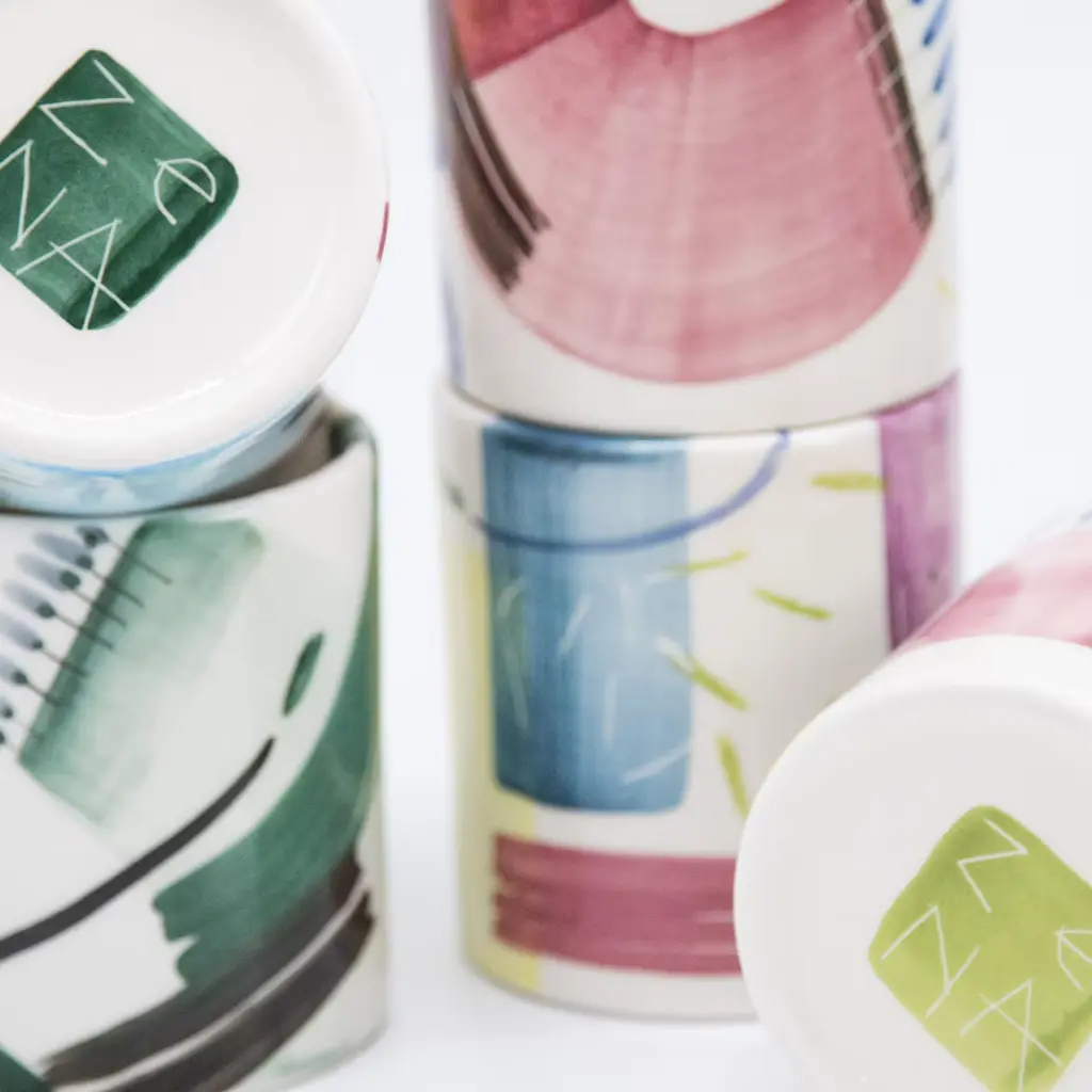 This set of four mugs is an explosion of colors and it is a composition of designs that belong to the Cleopatra, Viola, Cuboro and Tipota collection. Each mug is unique and the set enhances the beauty of each one of them. Each piece is unique and entirely handmade painted, the design may slightly vary. Please, contact the Concierge for further information and options.