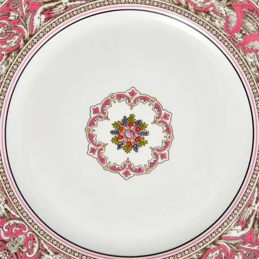 Commemorate 150 years of our iconic Florentine pattern with this Florentine Fuchsia Dinnerware. Crafted from fine bone china, this plate features the distinguished Florentine pattern in a vibrant fuchsia colourway. Celebrating myths, legends, and fantasy, this piece adds a touch of historical elegance to any dining occasion.