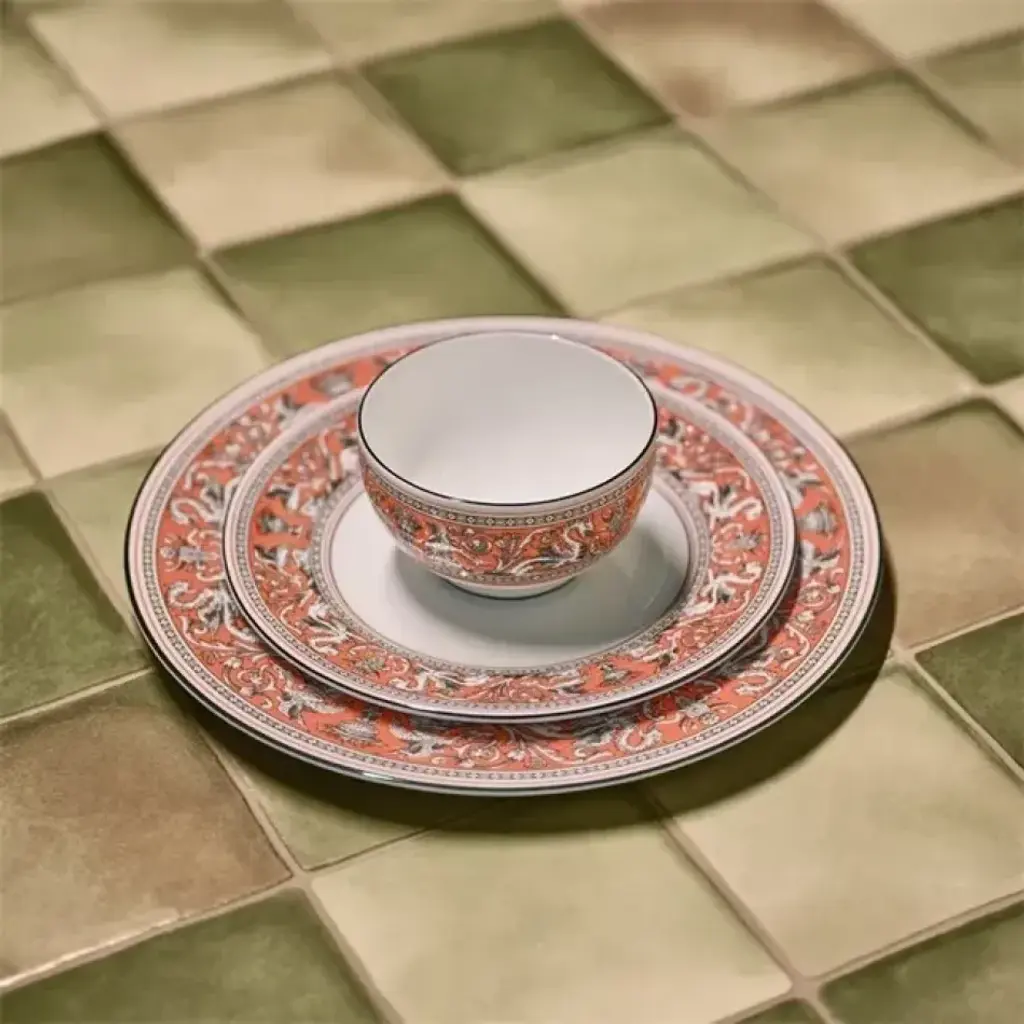 Celebrate 150 years of the iconic Florentine pattern with this Florentine Salmon Dinnerware. Crafted in England from fine bone china, this dinnerware is part of our revitalised Florentine collection, now available in five new vibrant colours. The salmon hue adds a contemporary twist to this classic design, making it perfect for both everyday use and special occasions.