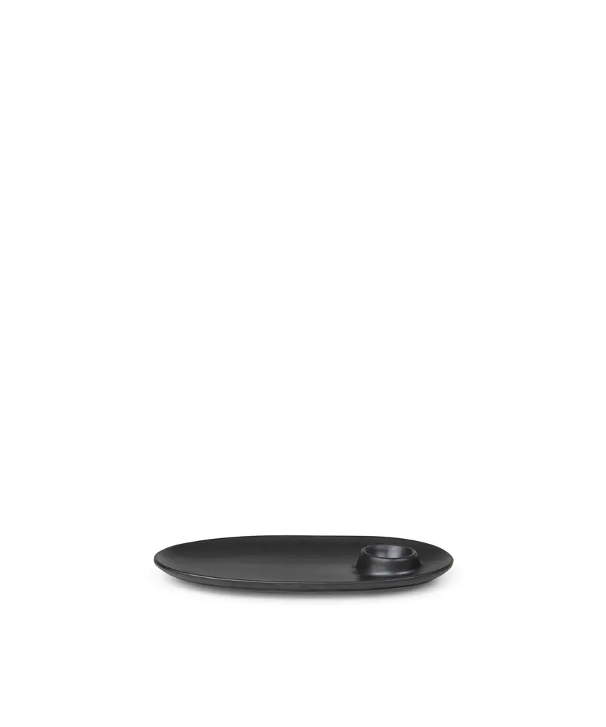 Flow is a series of perfectly imperfect tableware made to modern sensibilities using traditional craftsmanship techniques. All the items are detailed with a semi-matte glaze for a unique expression. Featuring an integrated egg cup, this oval plate is the perfect addition to any breakfast table, with plenty of room for your morning toast as well. The egg cup is indented on the backside, so the plates can be easily stacked when not in use. This product has a unique matte glazing. Cutlery marks may therefore appear with use.
