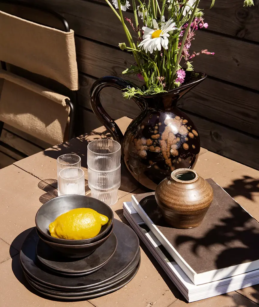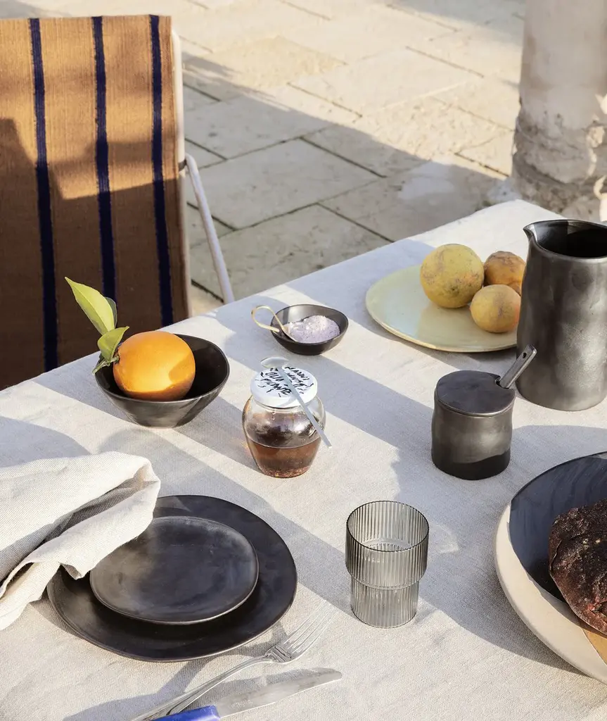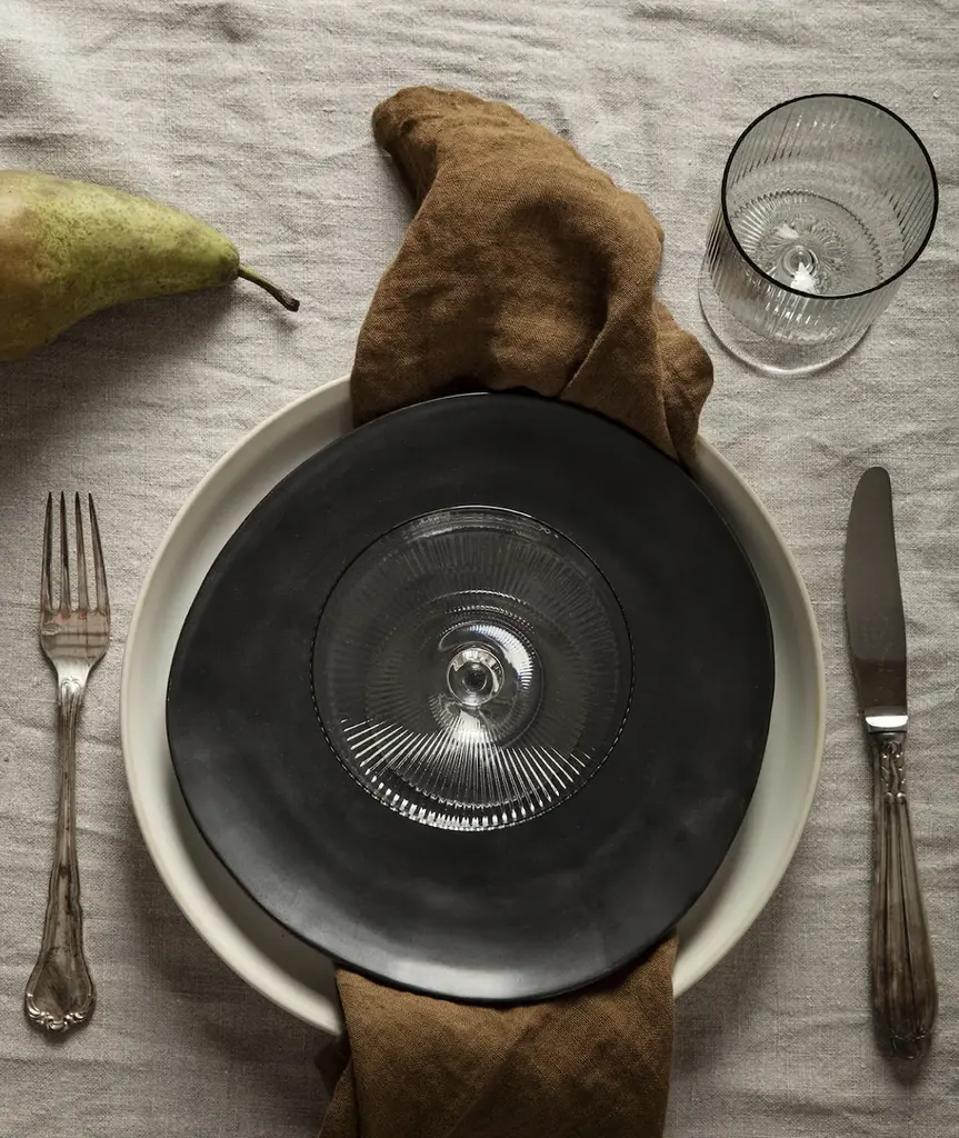 Flow is a series of perfectly imperfect tableware made to modern sensibilities using traditional craftsmanship techniques. All the items are detailed with a semi-matte glaze for a unique expression. This plate is a versatile addition to any table setting, serving breakfast, lunch and dinner in style on its distinctive backdrop.