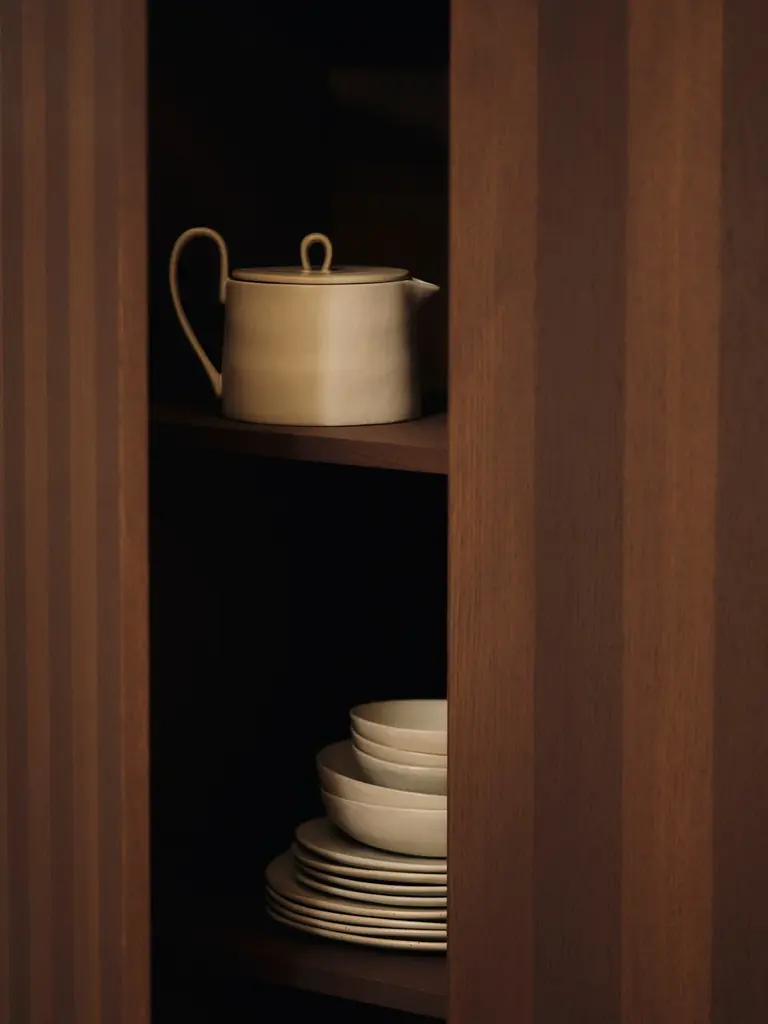 The Flow Tea Pot is part of a series of perfectly imperfect tableware made to modern sensibilities using traditional craftsmanship techniques. Made from stoneware with a semi-matte glaze, it features a gently rounded silhouette and a curved handle that adds a playful touch. Please note that a strainer is not included.