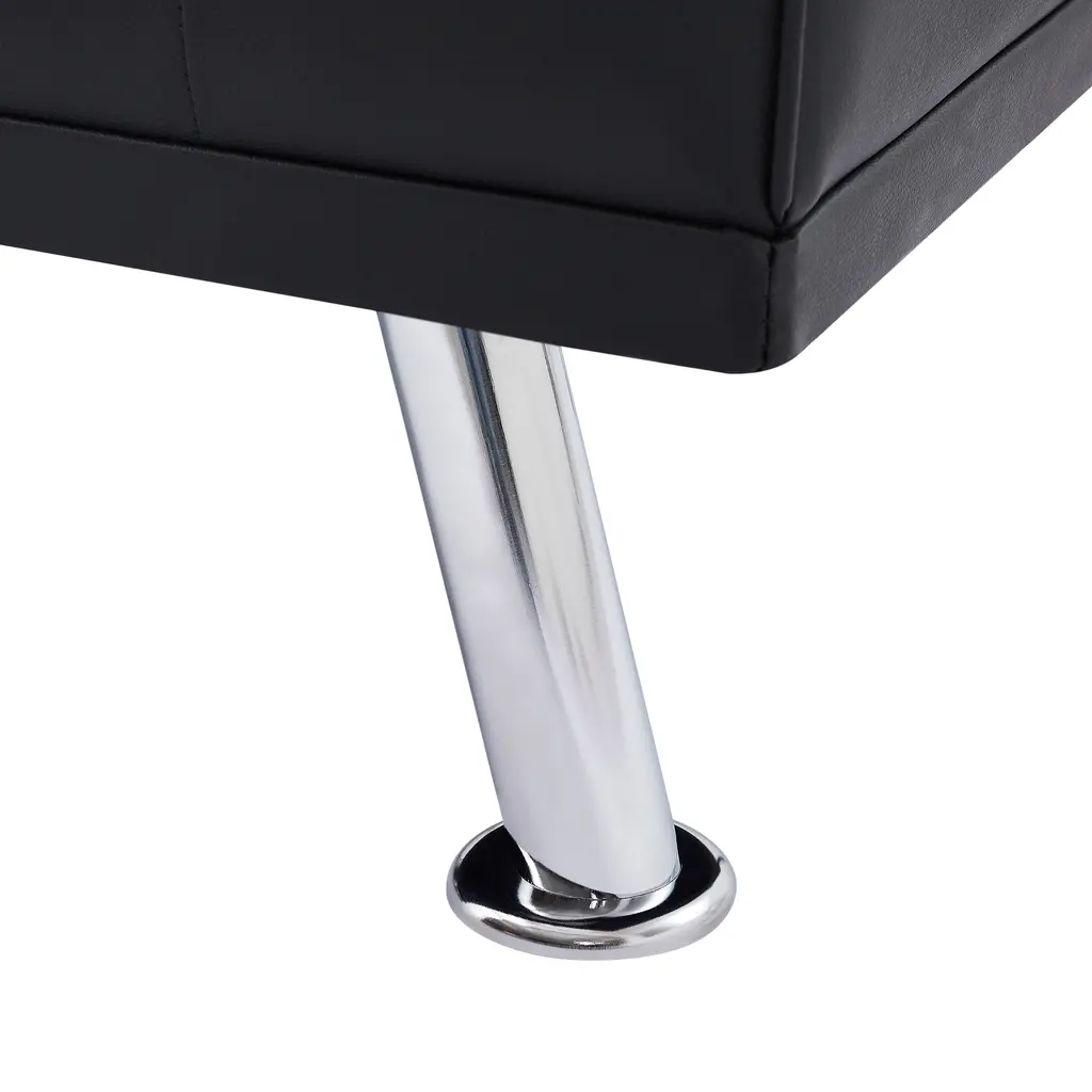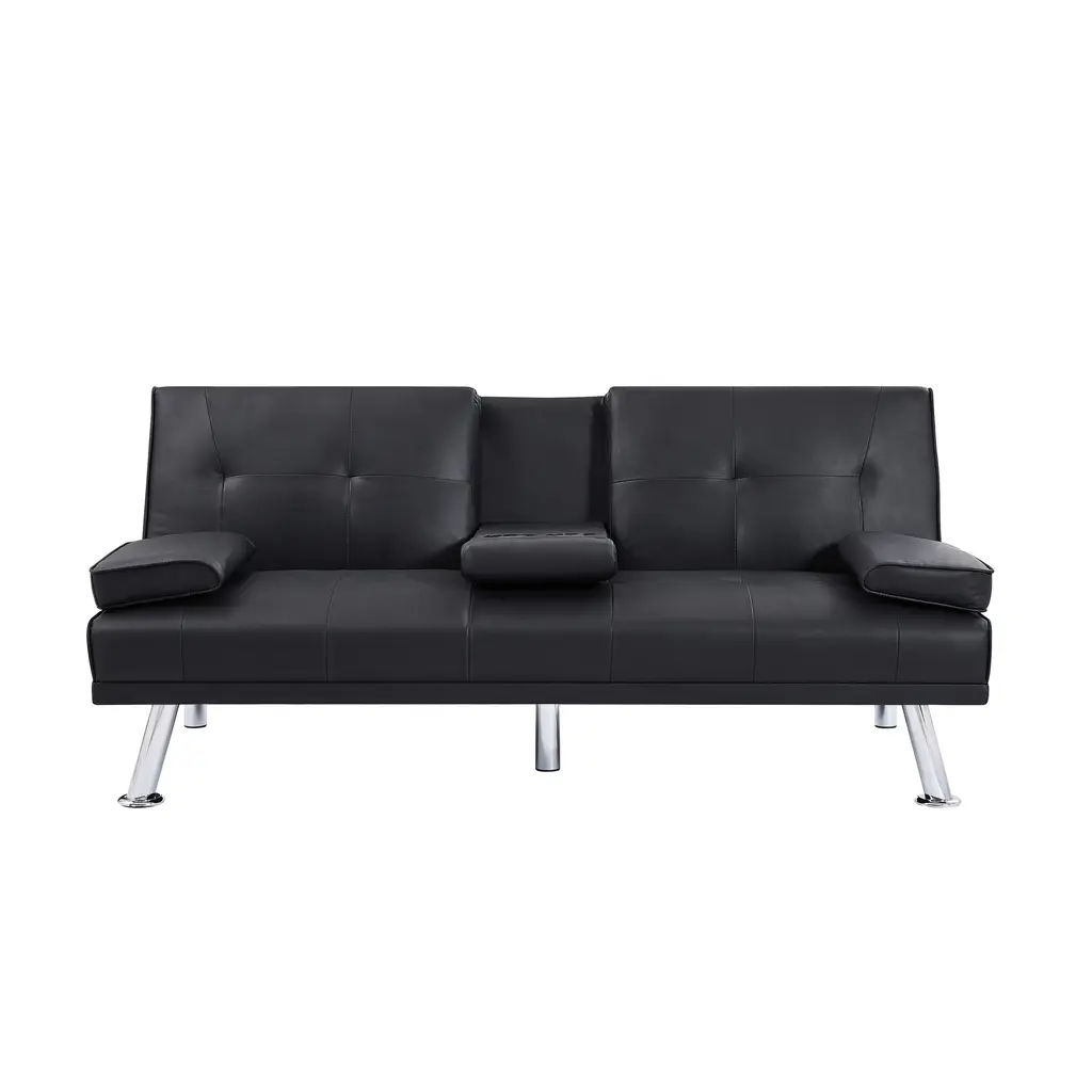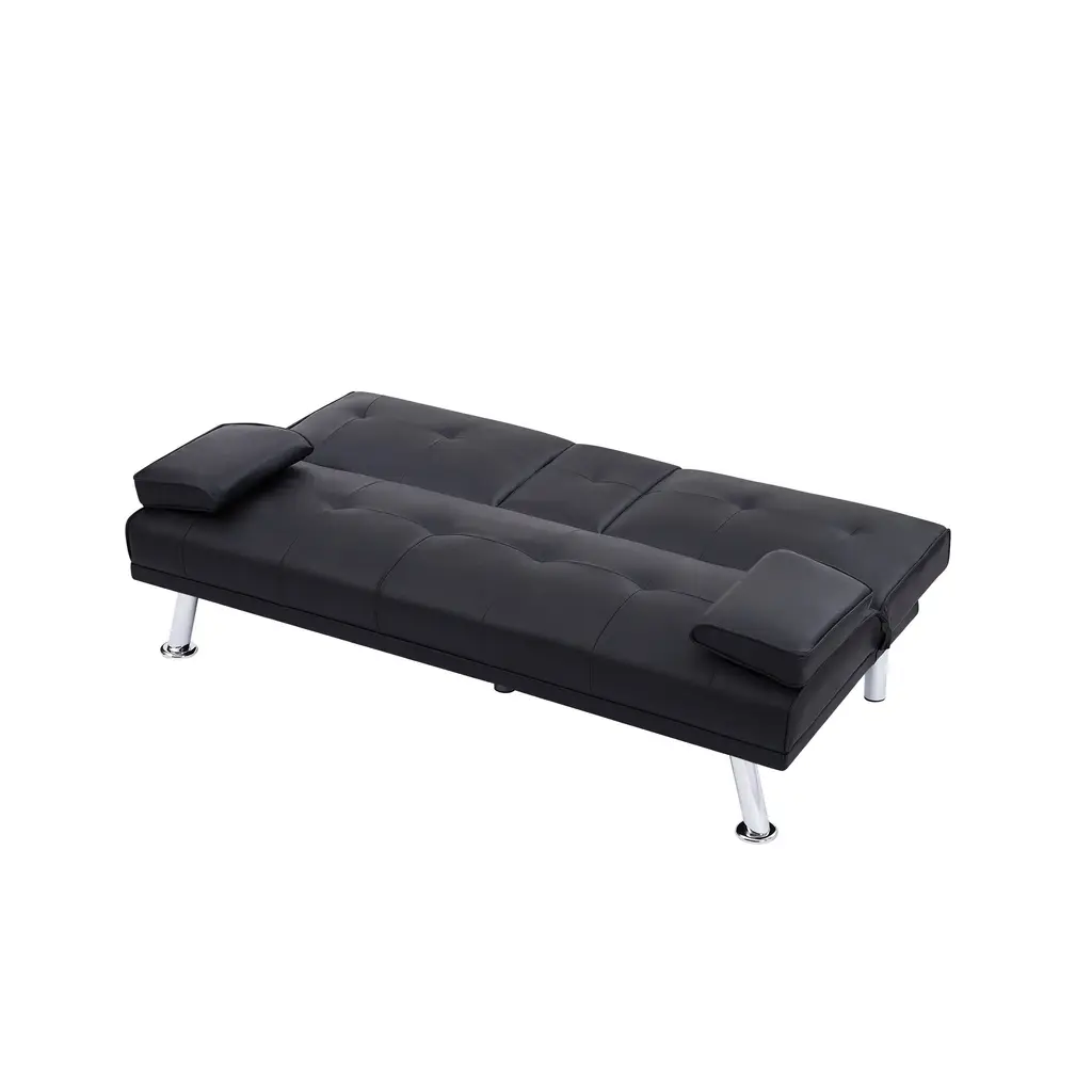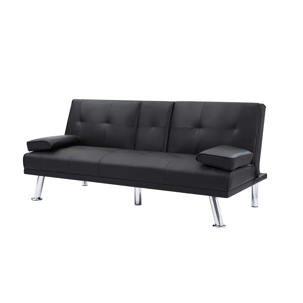 FOLDABLE SOFA BED WITH CUP HOLDERLIE FUNCTION SOFASOFA WITH COFFEE TABLE;TWO SEAT SOFA;THREE PERSON SOFA66 INCH SOFA;BUSINESS SOFAProduct Description of foldable sofa bed HT35151.Product: foldable sofa bed,2.Usage scenarios: business negotiations,customer rest area,balcony leisure,home cinema,half lying reading,lying flat rest.3.Feature: This sofa bed can adjust the backrest angle as needed.After flattening the backrest,Can be used as a temporary bed to rest.Module in the middle of the backrest,Can put cups and so on.4.Material:Breathable leather,Solid wood sofa frame,Sponge and silk cotton fillers,Metal sofa feet.5.Product size: 66*31*30 inchProduct weight: 60 boundsLoad-bearing: 520 bounds6.Instructions: Open the box to remove the product,Open the hardware package,Fix the sofa feet with screws.Push and pull the backrest back and forth,Can adjust the required angle.Hope to use our products and services,Make your living space more comfortable and beautiful.