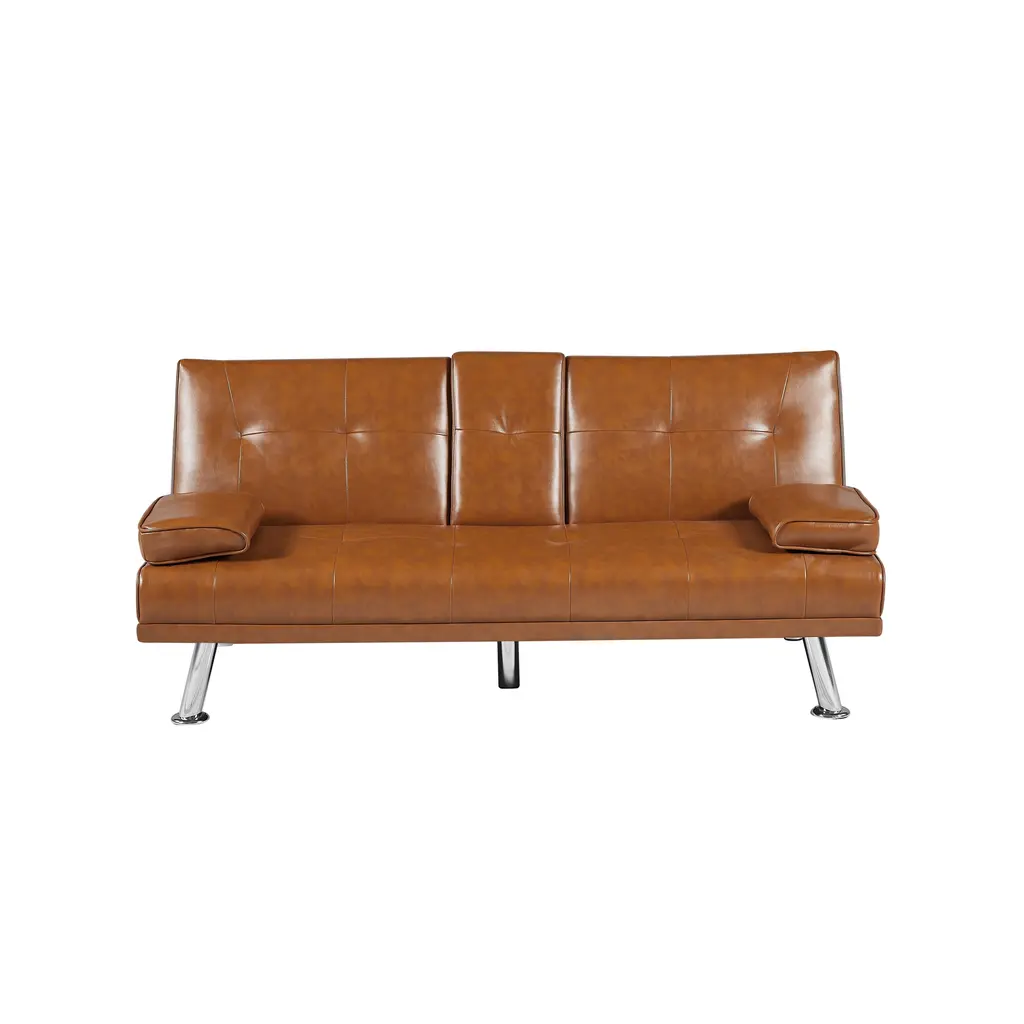 FOLDABLE SOFA BED WITH CUP HOLDERLIE FUNCTION SOFASOFA WITH COFFEE TABLE;TWO SEAT SOFA;THREE PERSON SOFA66 INCH SOFA;BUSINESS SOFAProduct Description of foldable sofa bed HT35151.Product: foldable sofa bed,2.Usage scenarios: business negotiations,customer rest area,balcony leisure,home cinema,half lying reading,lying flat rest.3.Feature: This sofa bed can adjust the backrest angle as needed.After flattening the backrest,Can be used as a temporary bed to rest.Module in the middle of the backrest,Can put cups and so on.4.Material:Breathable leather,Solid wood sofa frame,Sponge and silk cotton fillers,Metal sofa feet.5.Product size: 66*31*30 inchProduct weight: 60 boundsLoad-bearing: 520 bounds6.Instructions: Open the box to remove the product,Open the hardware package,Fix the sofa feet with screws.Push and pull the backrest back and forth,Can adjust the required angle.Hope to use our products and services,Make your living space more comfortable and beautiful.