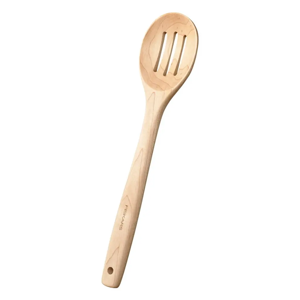 Fiskars' Folken spoon brings both practicality and style to the kitchen with its beautifully grained wooden surface. Made from responsibly sourced, FSC®-certified maple, the spoon is safe to use with seasoned cast iron and enamel-coated cookware, as it won’t scratch the surface. The ergonomic handle sits comfortably in the hand, making every cooking task easy and enjoyable. Fiskars' Folken kitchen collection is a tribute to traditional cooking and durable materials. With timeless design and high-quality craftsmanship, the Folken series is made to serve faithfully from one cooking session to the next – and from one generation to another.