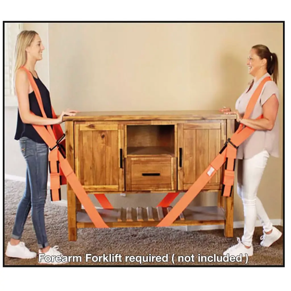 Lift heavy items with greater comfort, posture support, and freedom of movement using the Forearm Forklift Harness System. This setup includes the standard Forearm Forklift 3-loop lifting straps plus two backpack-style harnesses that clip directly into the loops—giving you a new way to carry weight safely and efficiently.The harness helps you maintain upright posture and shifts the effort to your back and core, keeping your arms and hands freer to guide and stabilize items during the lift. It’s ideal for navigating tight corners, stairs, or tricky doorways where control matters most.Rated to lift up to 800 pounds, this system is perfect for everything from professional moves to weekend home projects. Use it to move desks, lockers, safes, woodworking machines, hot tubs, mattresses, appliances, furniture, HVAC units, and even cast iron bathtubs—all while reducing strain and improving safety.Made from durable high-visibility orange material, this harness-based system makes lifting feel up to two-thirds lighter, with greater balance and comfort than lifting alone.