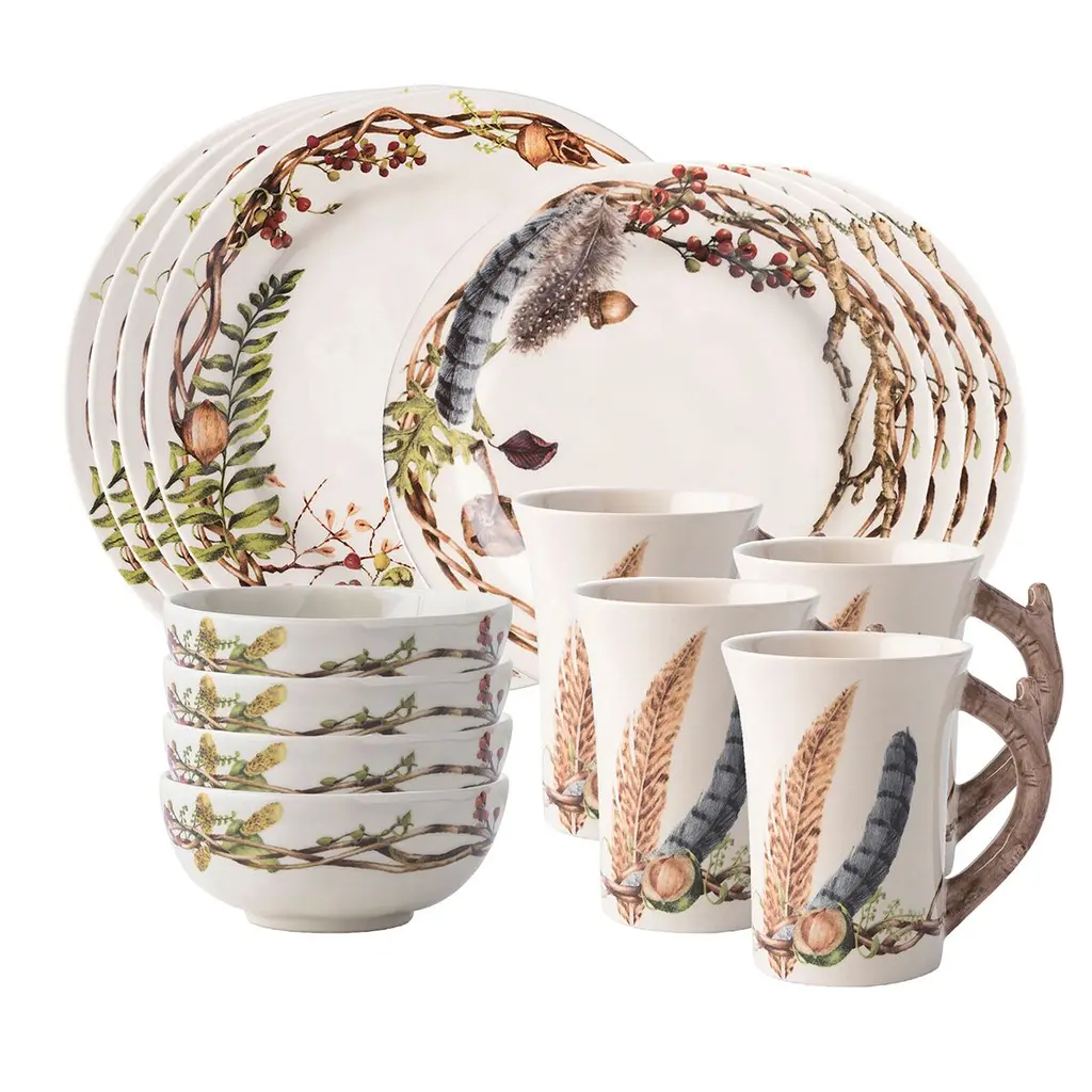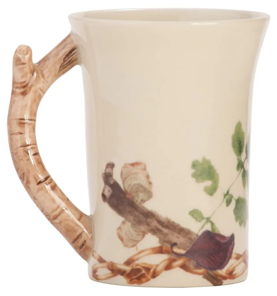 A charming addition to a country kitchen, this mug is crafted of smooth ceramic trimmed with feather motifs and a branch-shaped handle.