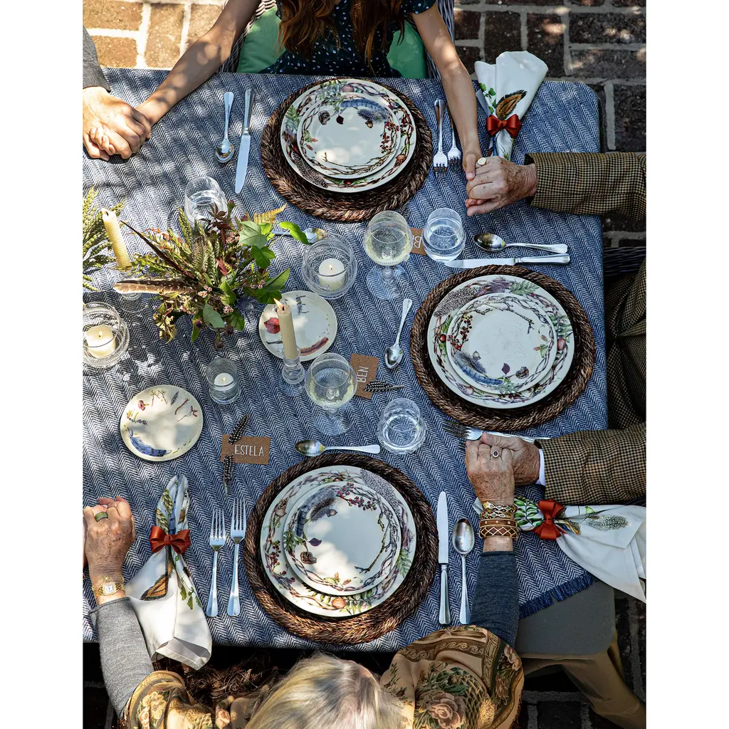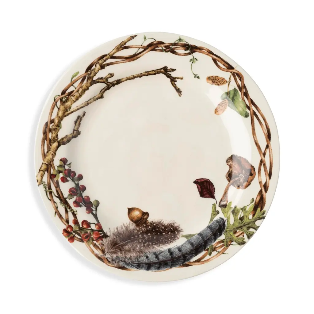 Twigs and acorns create an enchanting trim around this eye-catching plate set, a beautifully crafted display of woodland charm.