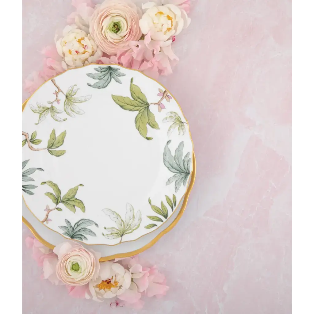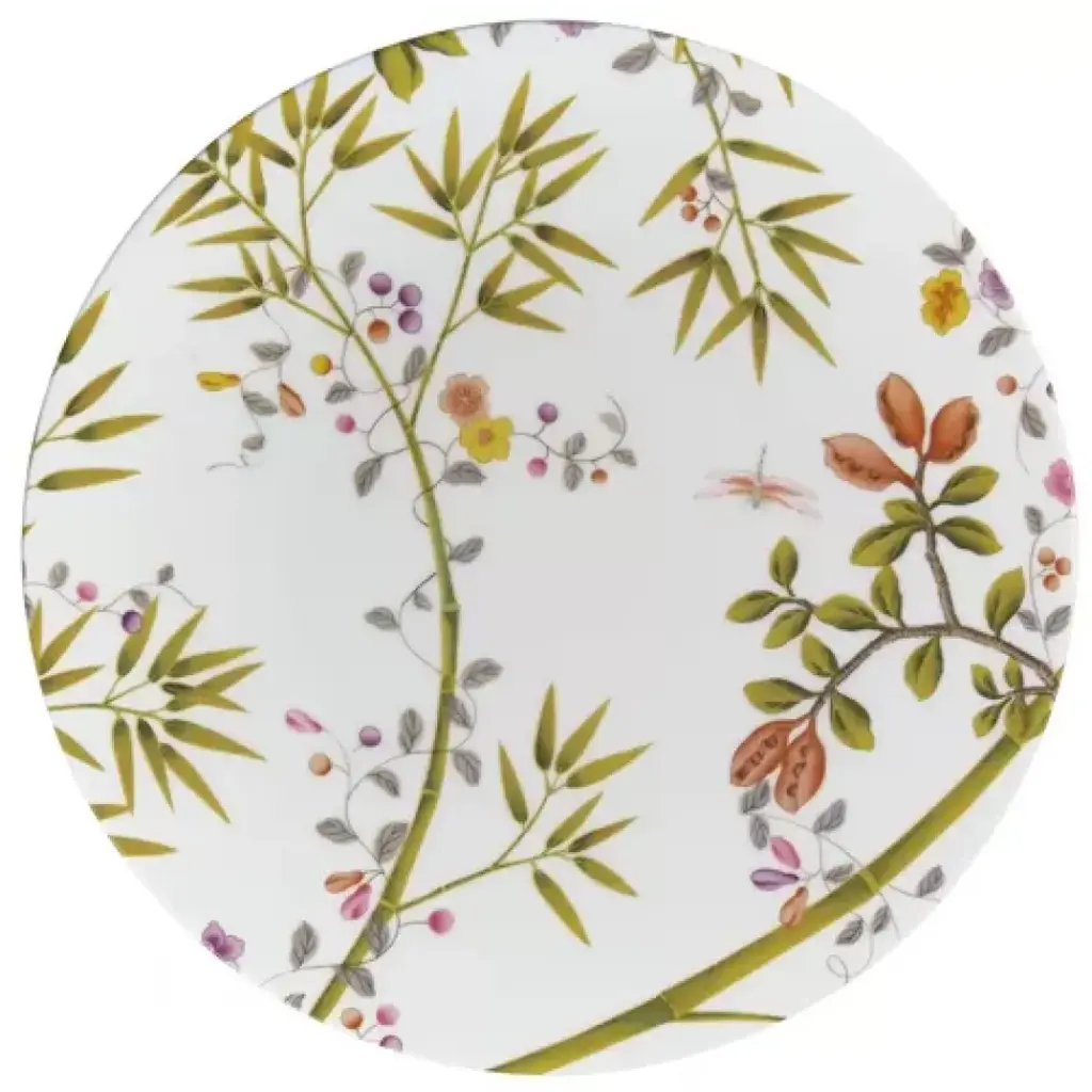 The Rothschild Birds may receive all the attention but the supporting cast of flowering trees with subtle pink flowers and stylized greenery are equally important to the story. With Foret Garland, they finally receive their turn in the spotlight as a beautiful laurel of flora growing along the rim of the porcelain canvas. The resulting composition takes on a very modern sensibility when featured on its own Now the biggest porcelain manufactory in Europe, Herend was founded in 1826 to produce earthenware in the small Hungarian village for which it was named. At the time, Hungary was flooded with low-cost pottery, but in 1839, Mor Fischer became the Manufactory’s new owner and he decided to focus on producing dinnerware replacement pieces for Europe’s royal families to complement their valuable porcelain patterns from Germany and the Far East. As his client base grew, Fischer commissioned his artists to begin designing dinnerware patterns of their own. Queen Victoria’s 1851 purchase of a large set for Windsor Castle was a milestone, setting the stage for aristocrats throughout Europe to clamor for Herend in their estates. In the 1850s, Herend added meticulously-crafted figurines to its creations. Herend’s trademark fishnet pattern, which is widely recognized and prized as Herend’s signature design, started in 1858 when an artist who was intrigued with a Chinese plate’s fish scale design painted it onto a rooster figurine to imitate feathers.