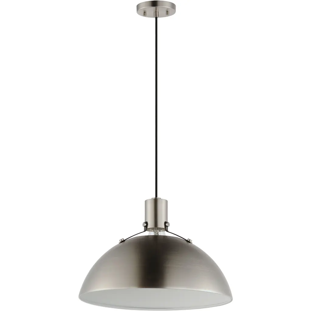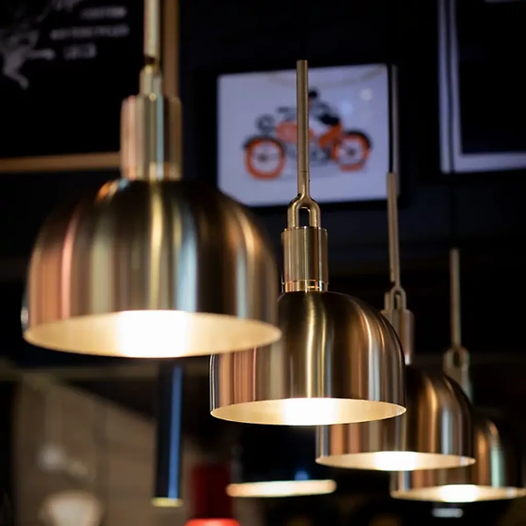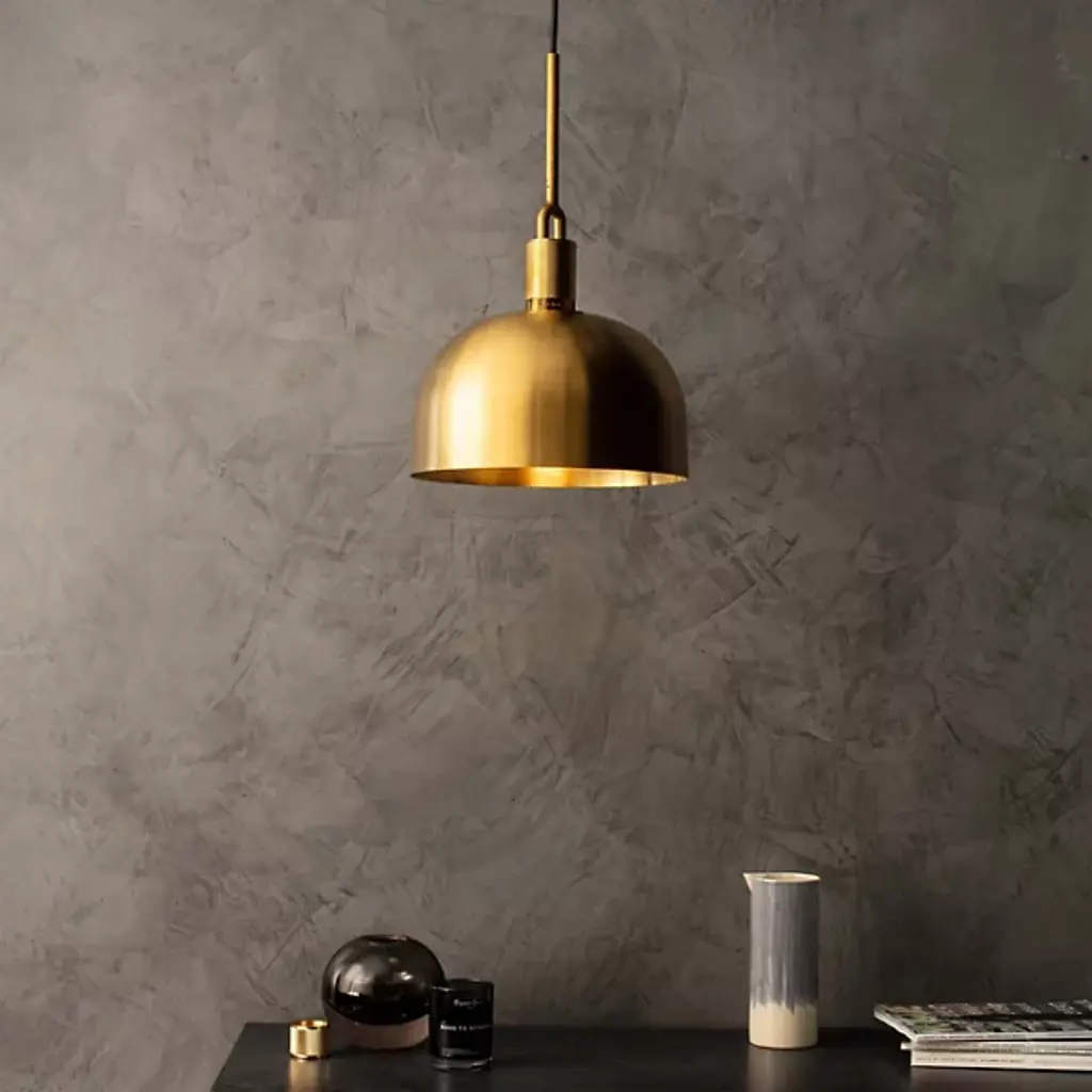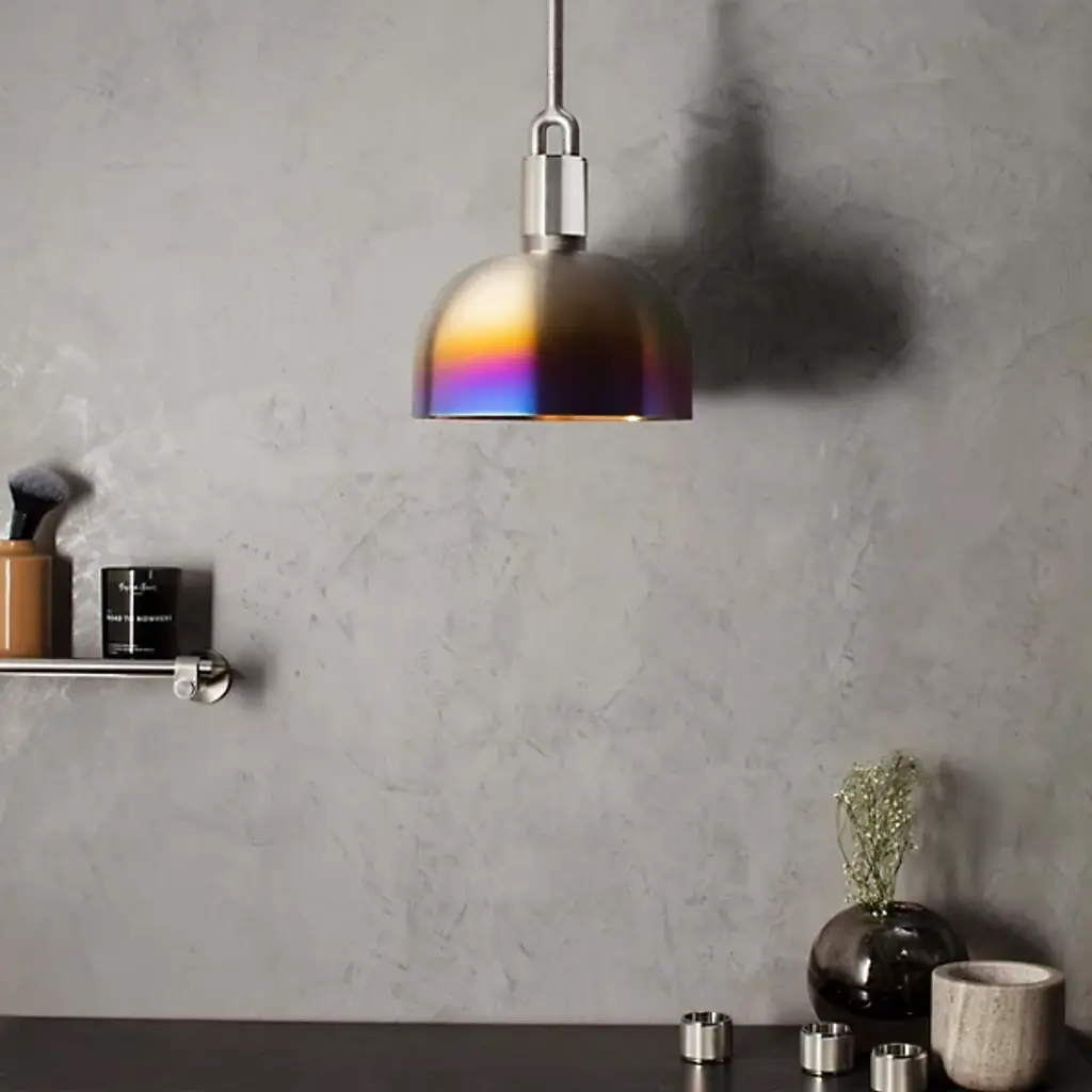 The Forked Dome Pendant from Buster + Punch provides an intricate retro style to interior spaces. Extending from a rounded canopy along a slim strand, it uses a cast metal fork construction to retain a vertically grooved cylinder housing set atop a lower section enriched with the Buster + Punch signature scrawl. Strong lamping is provided by a Forked-specific Buster bulb set inside a handblown glass diffuser and surrounded by a hand-spun dome shade.