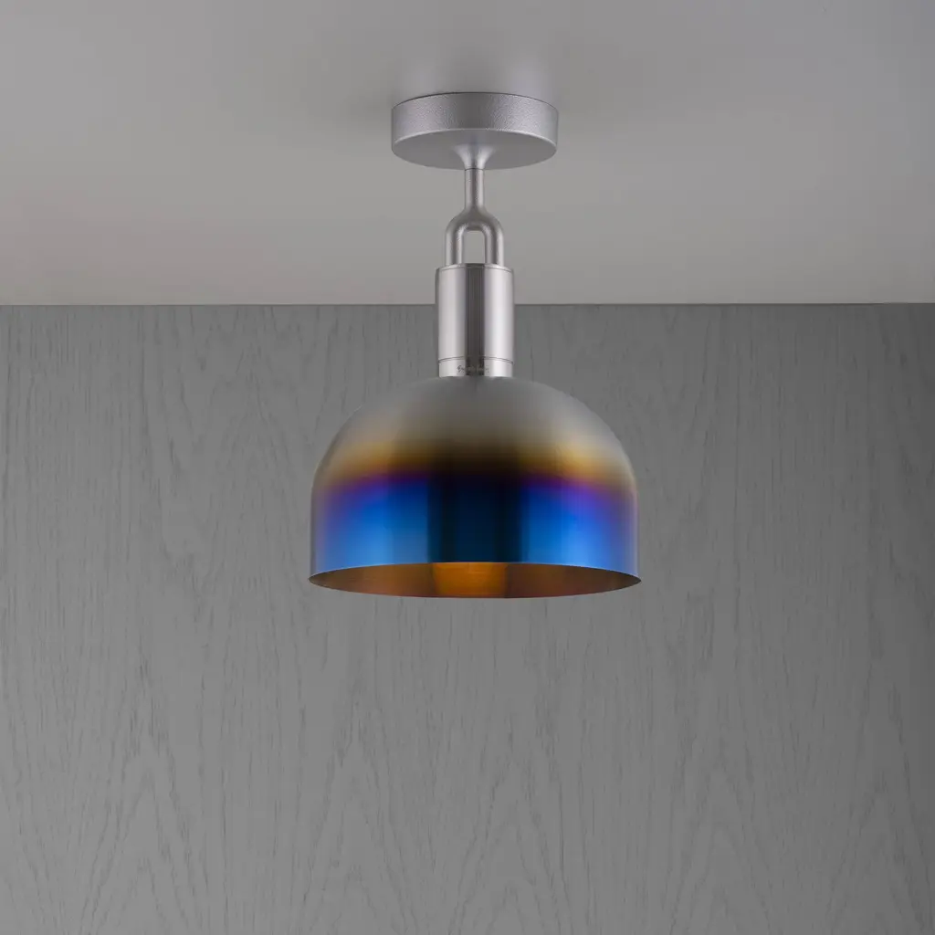 A ceiling light and shade, combining machined, hand-spun and cast solid metal, all refined by hand. It features our cast forked detailing and signature diamond-cut linear knurling. The light comes complete with a Forked-specific dimmable Buster Bulb, casting a soft ambient light.
