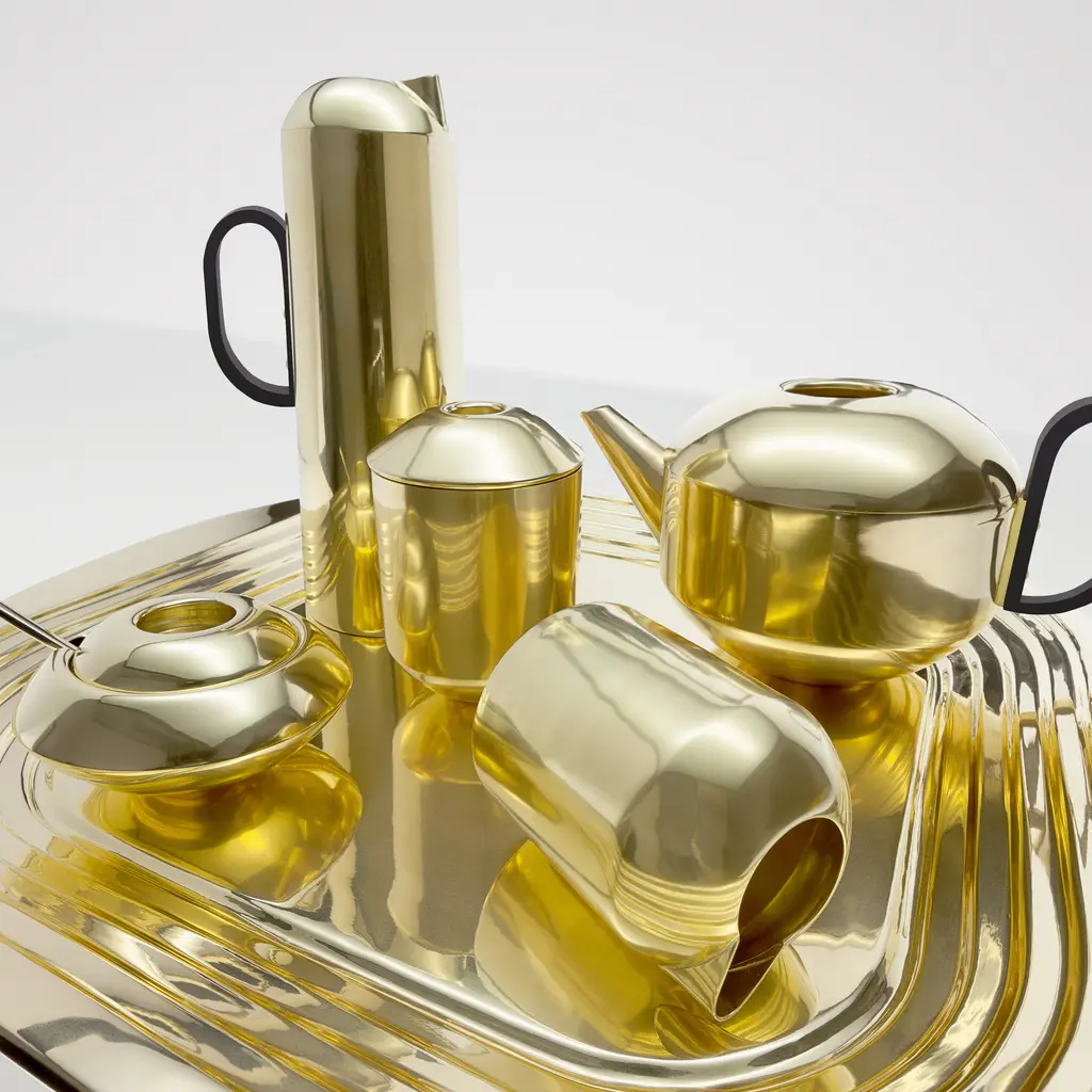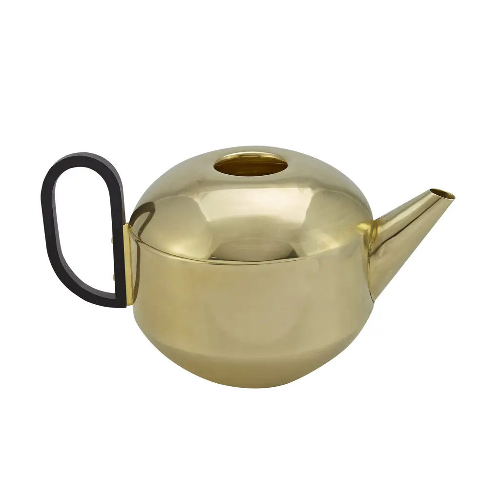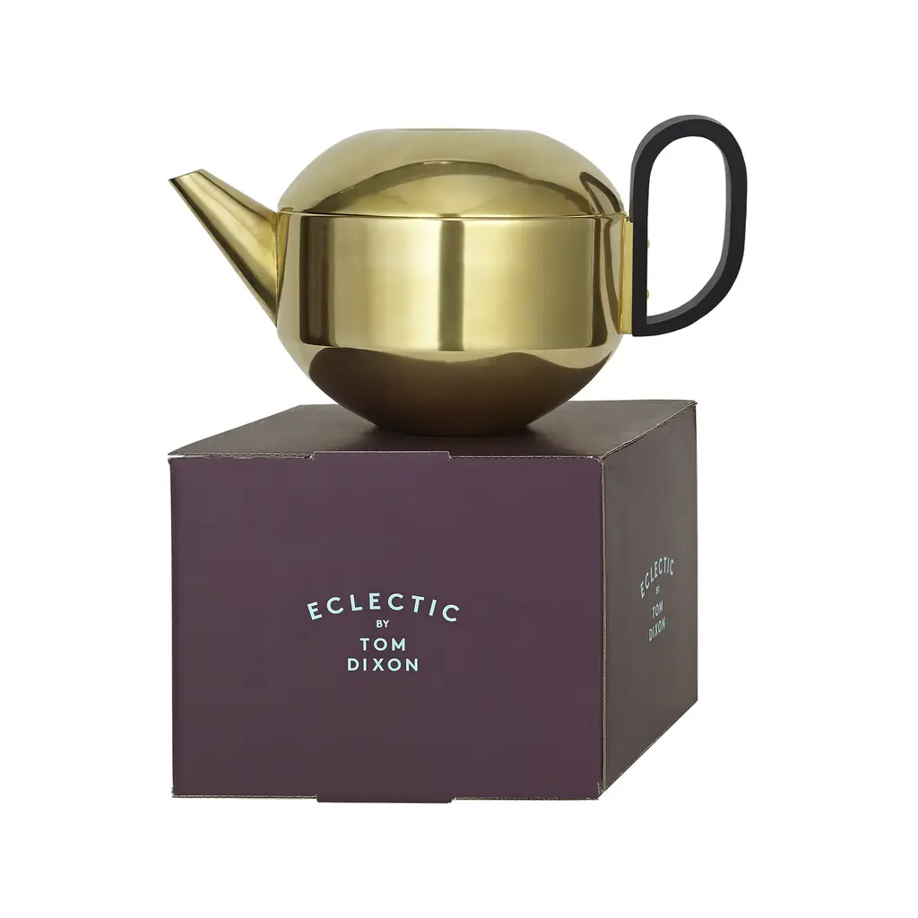 The ultimate British symbol, transformed into stunning piece of contemporary design. Made by Tom Dixon, the Form Teapot redefines the classic tea brewing tool as a creative tableware item. Stylish and playful at the same time, the teapot can enhance any kitchen with its bold personality. The rounded silhouette boasts a gorgeous finish. Made of brass, every Form Teapot is polished and then carefully dipped into a gold wash to create a slightly matte surface. A black rounded handle completes the design. Perfect for creating a focal point on a table or in a kitchen, the Tom Dixon Form Teapot is also ideal as a gift for the tea lover in your life.