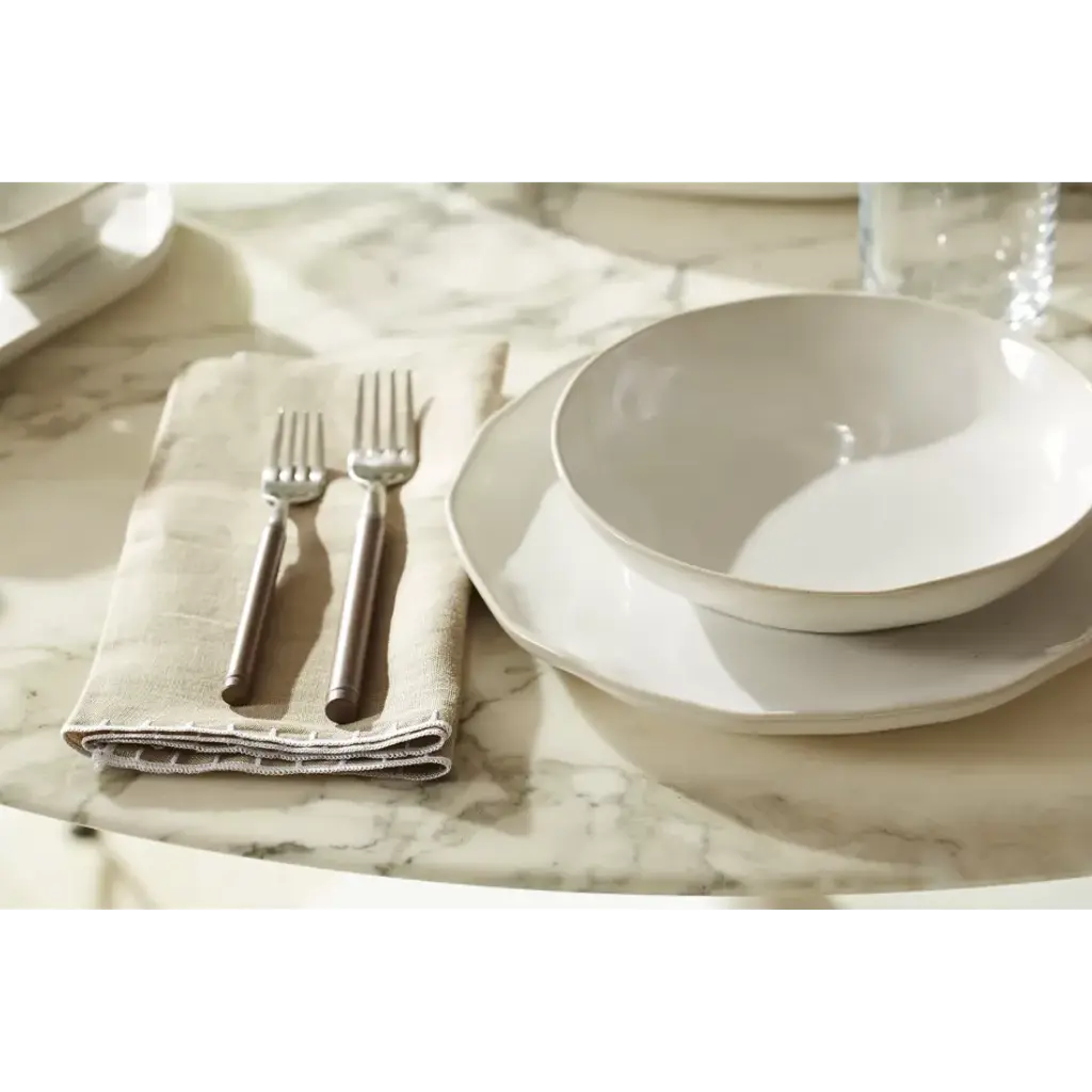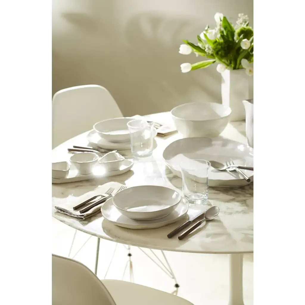 The Forma Cloud Medium Serving Bowl, made of the strongest stoneware, is handformed in Veneto, Italy. Perfect for serving pastas, as a fruit bowl, or for a big green salad, this simple serving bowl lets your food be the statement. Since 1983, Vietri has specialized exclusively in Italian handcrafted ceramics, stainless and pewter flatware, mouth blown glassware, lamps, urns and planters. Families of artisans with 3 or 4 generations of history create these special pieces using centuries-old techniques. The subtle color from a paintbrush and the curving stroke of the artist's hand are never repeated in quite the same way, making each piece truly unique.