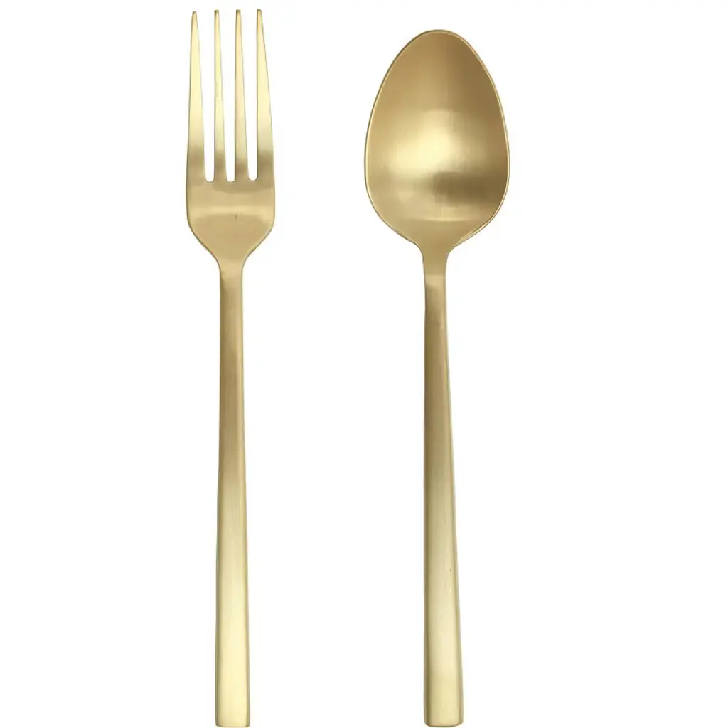 Fortessa Arezzo 2 Piece Serving Set, Boxed, Brushed Gold