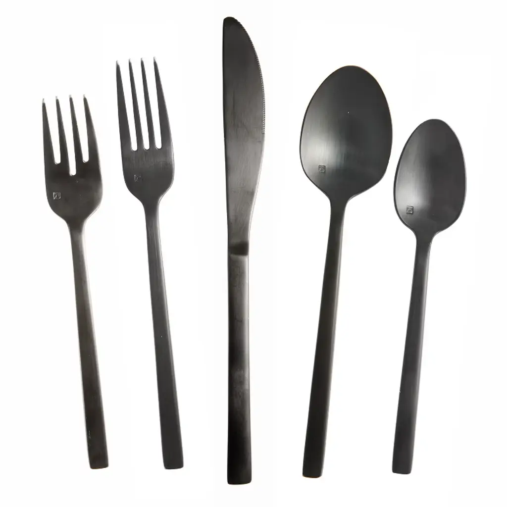 Fortessa Arezzo Brushed Black 18/10 Stainless Flatware Set, 5-piece