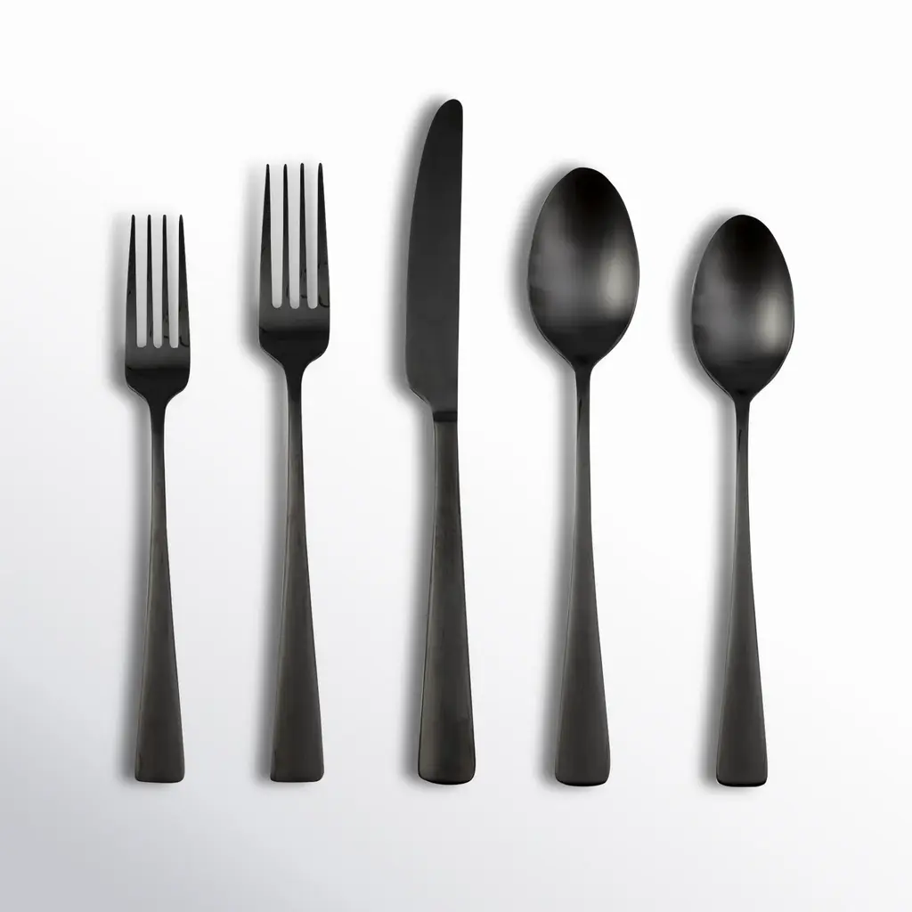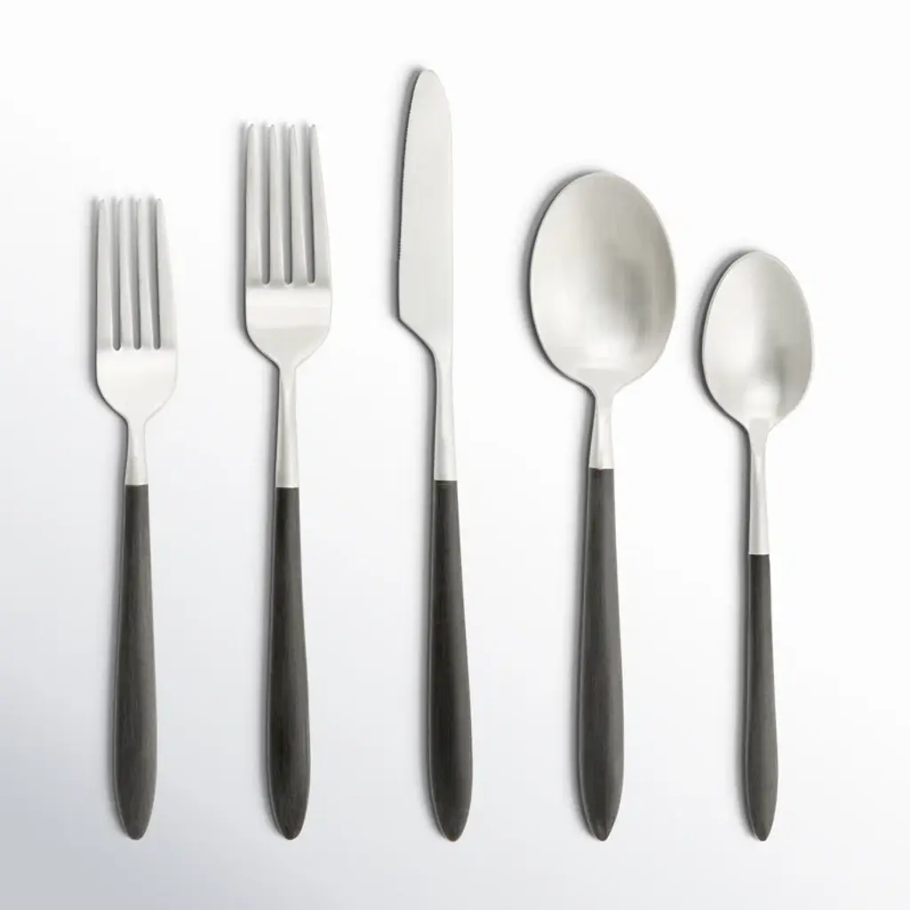 Fortessa Velo 18/10 Stainless Steel 20 Piece Flatware Set, Service For 4, Black/brushed Silver
