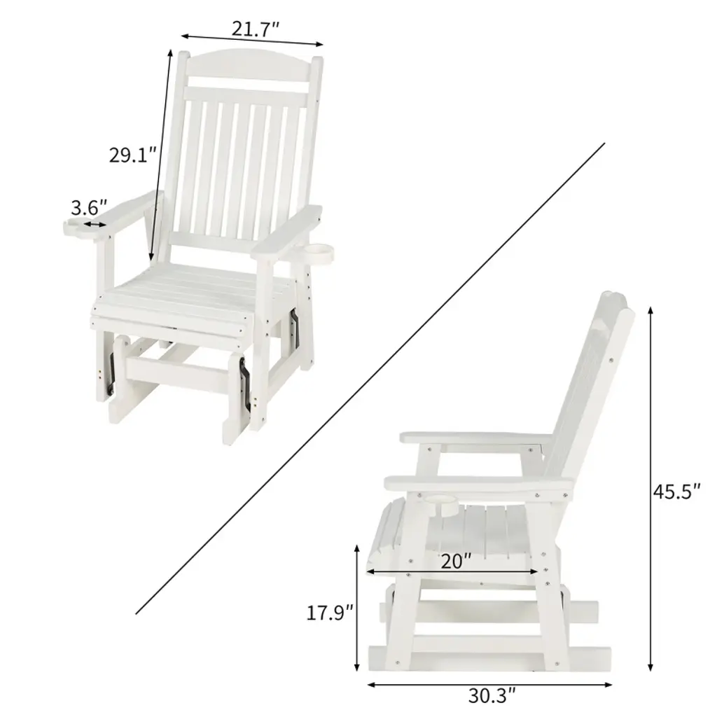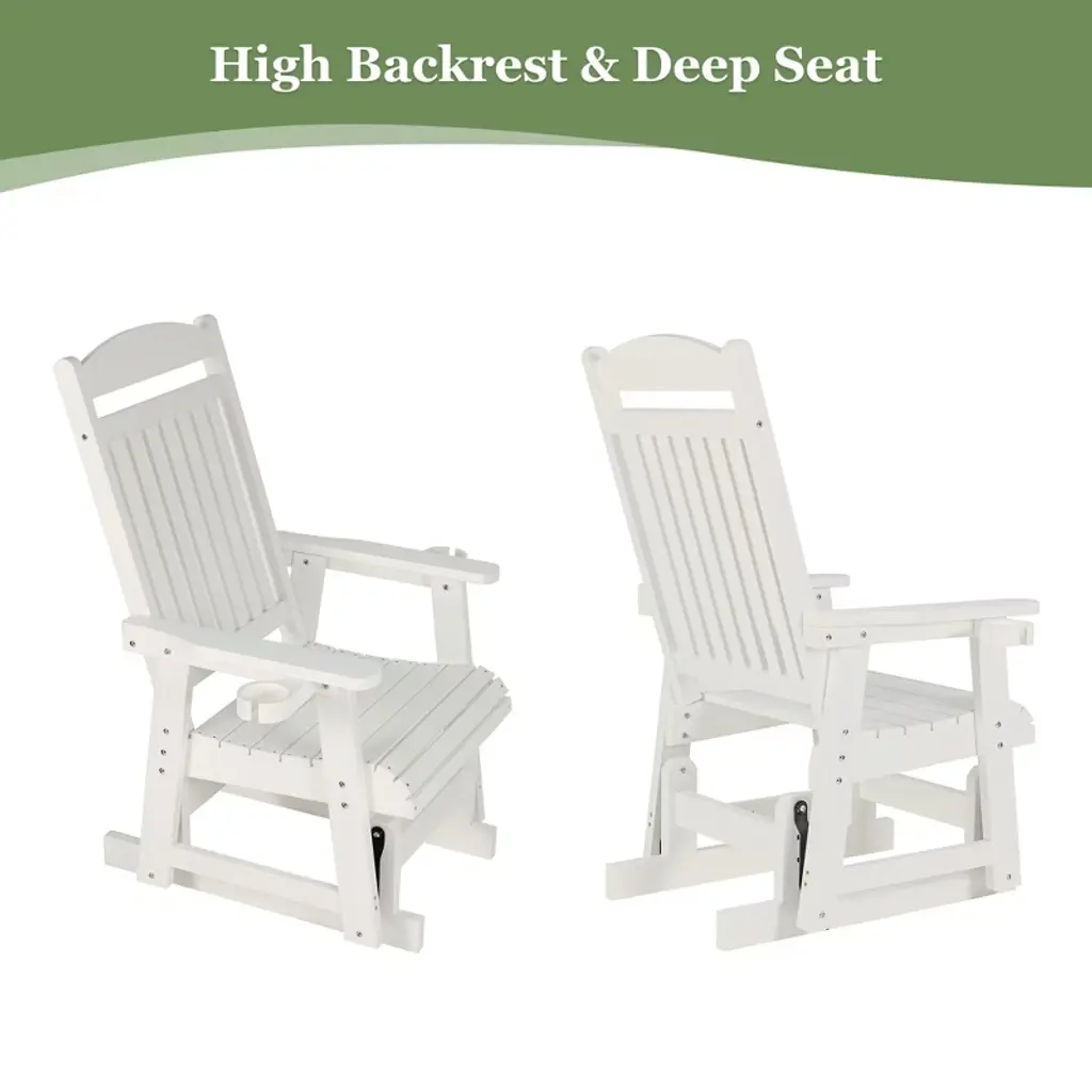 Fortune Candy 1-person Poly Lumber Patio Glider, With Cup Holders, High Backrest And Deep Contoured Seat, Hips Material (White)