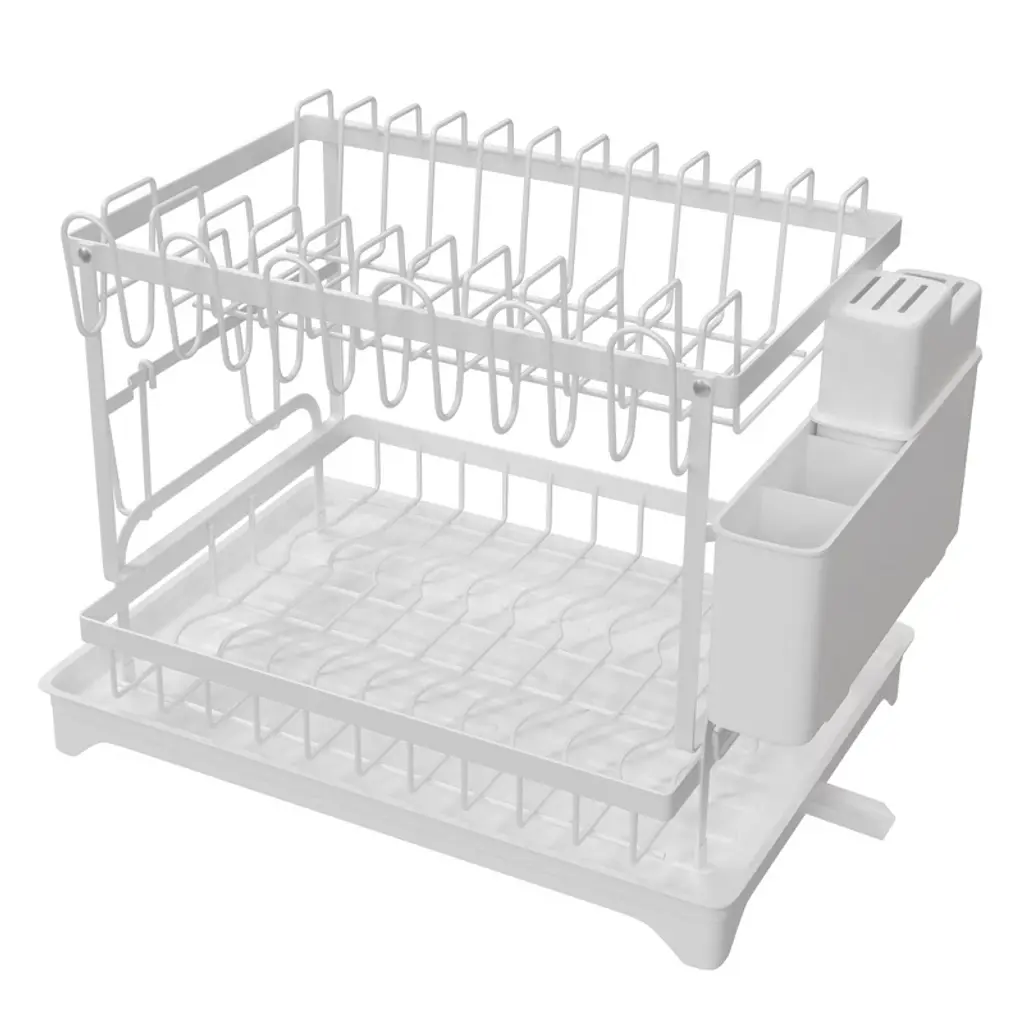 Fortune Candy 11.41'' Tall 2 Tier Dish Drying Rack, Large Apacity, White
