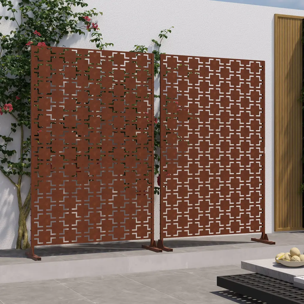 Free Standing Decorative Outdoor Privacy Screen - 03-Reddish Brown